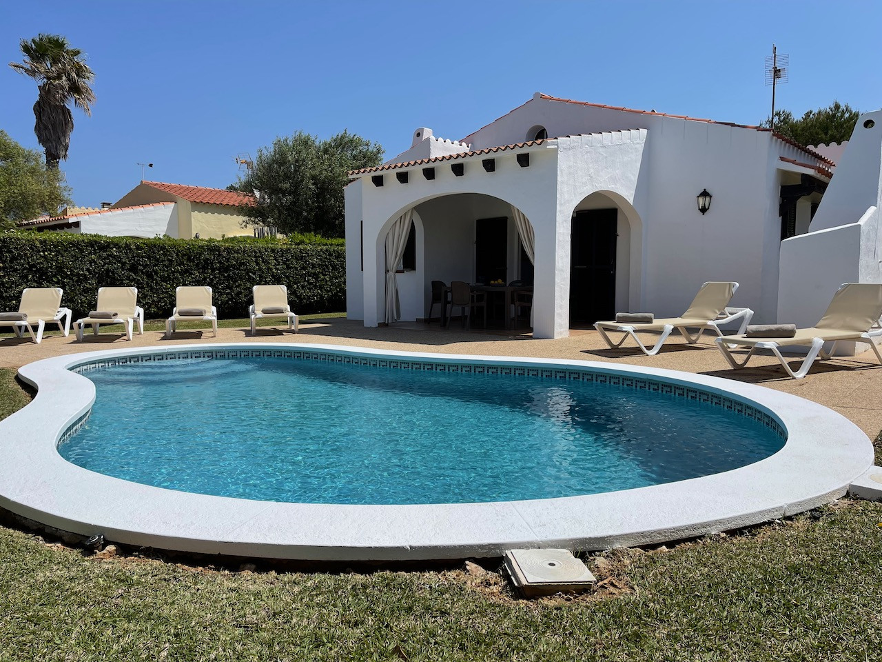 The villa is in classic Menorcan style both inside and outside. It is located on a plot of about 500m2 and the house has a total of 100m2 built.