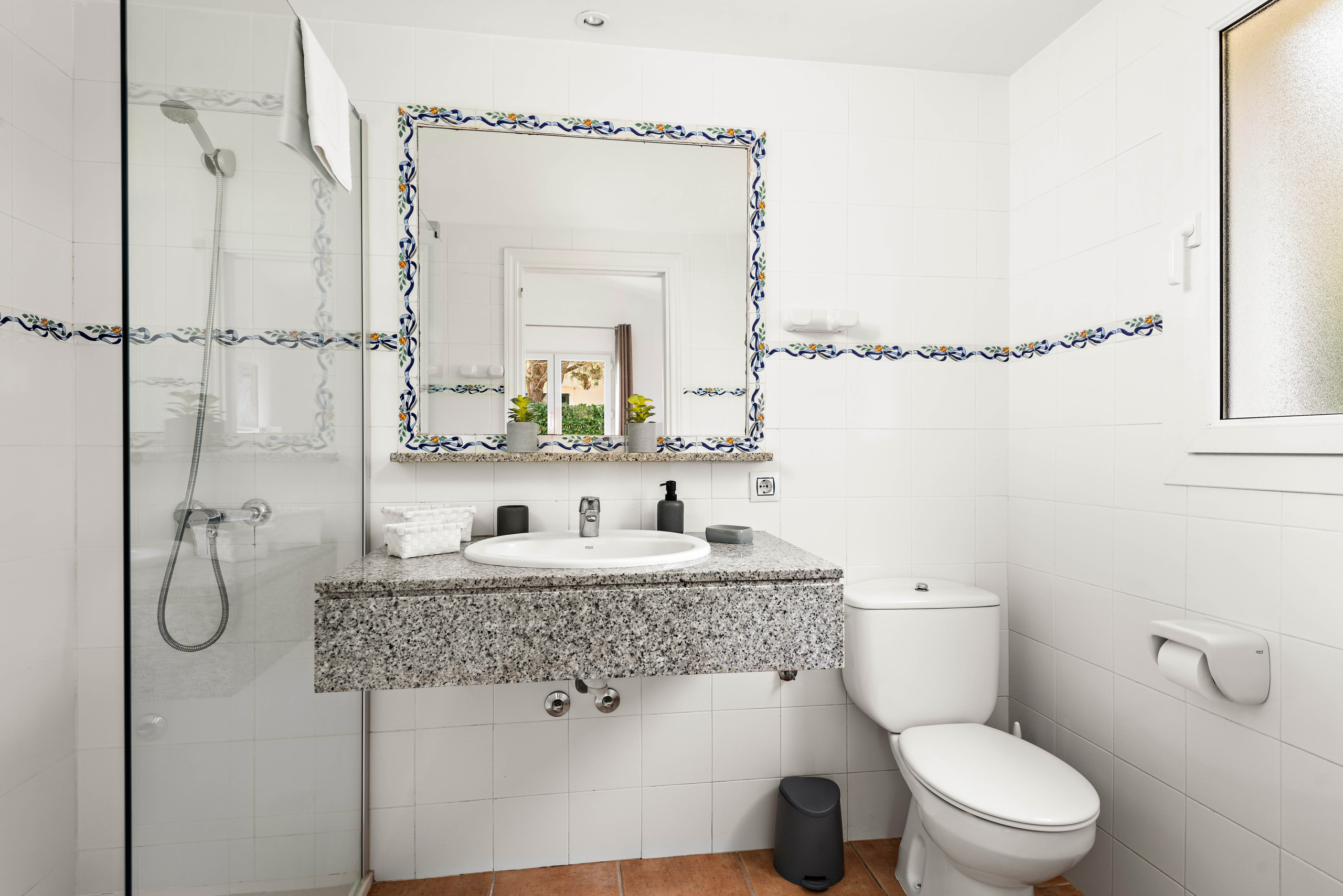 The villa has 2 bathrooms, one of them en-suite, both with a shower tray.