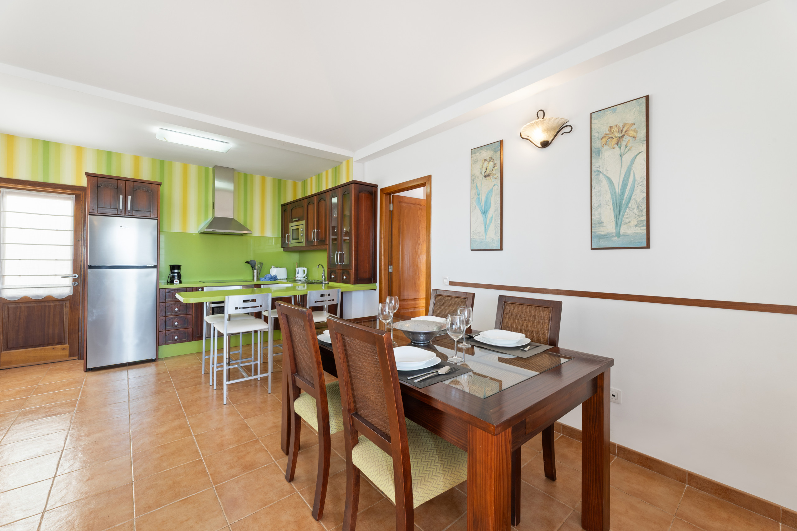 In the open plan kitchen, refrigerator, microwave, oven, freezer, dishes/cutlery, kitchen utensils, coffee machine, toaster, kettle and juicer are provided.