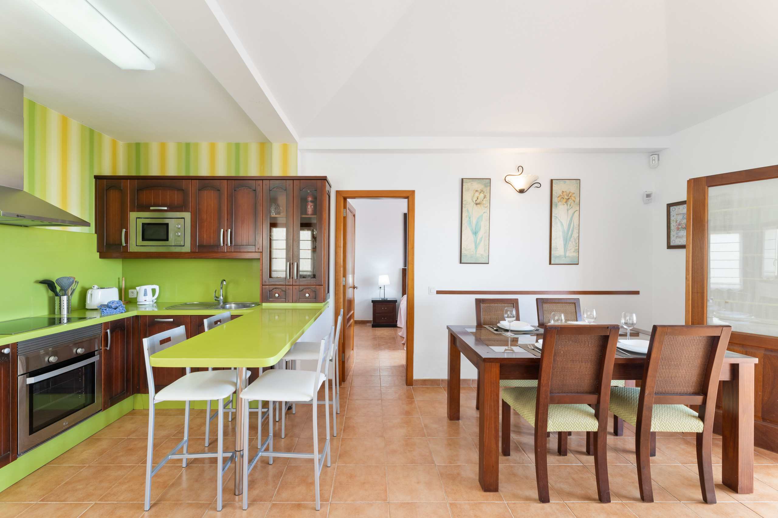 Accommodation of 117 m² nice and fully equipped, with views of the garden and pool.