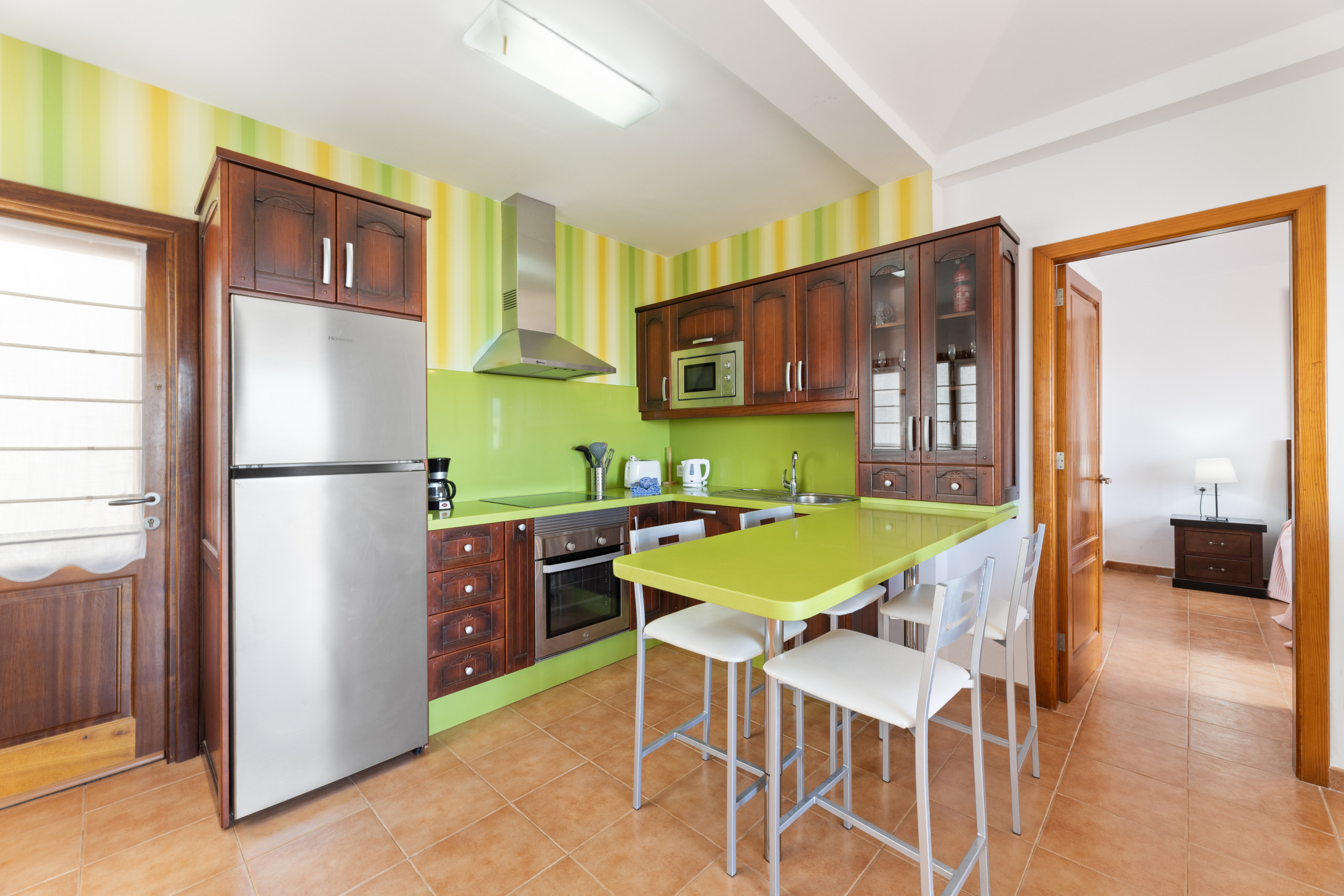 The villa in Playa Blanca has 3 bedrooms and has capacity for 6 people. The villa is 109 m². The property is located 700 m from Playa de las Coloradas sand beach, 700 m from Casa Carlos the restaurant, 750 m from La Cocina de Colacho the restaurant, 900 m from Paulo's Bar coffee shop, 2 km from Playa Mujeres sand beach, 2 km from Playa Dorada sand beach, 10 km from Parque Naional de Timanfaya nature reserve, 30 km from Aeropuerto César Manrique-Lanzarote international airport, 30 km from Aeropuerto César Manrique-Lanzarote airport.The accommodation is equipped with the following items: terrace, washing machine, barbecue, iron, safe, internet (Wi-Fi), hair dryer, air-conditioned, private heated swimming pool, TV.In the open plan kitchen, refrigerator, microwave, oven, freezer, dishes/cutlery, kitchen utensils, coffee machine, toaster, kettle and juicer are provided.1 review