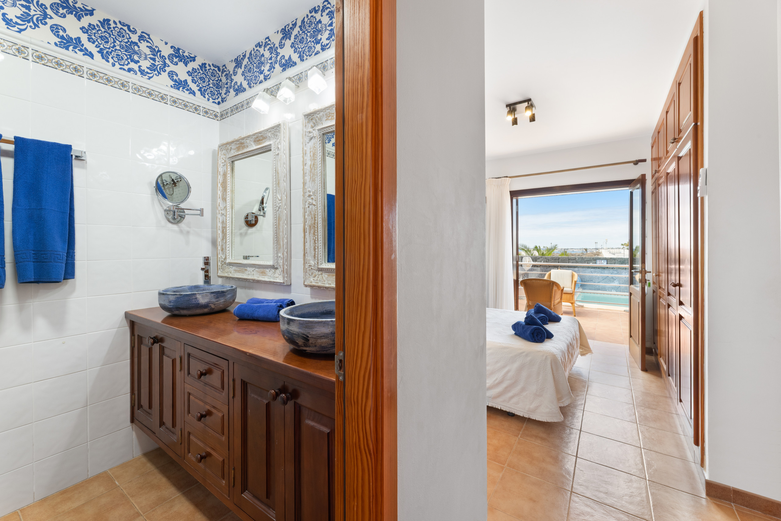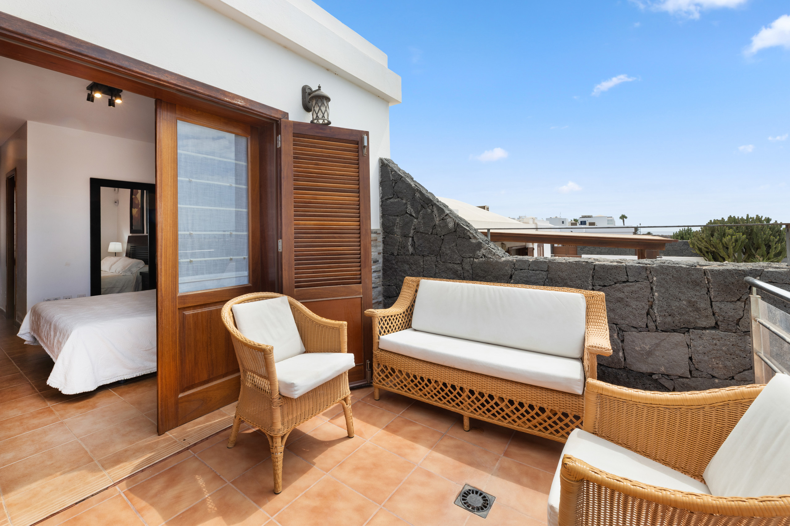 The villa in Playa Blanca has 3 bedrooms and has capacity for 6 people.