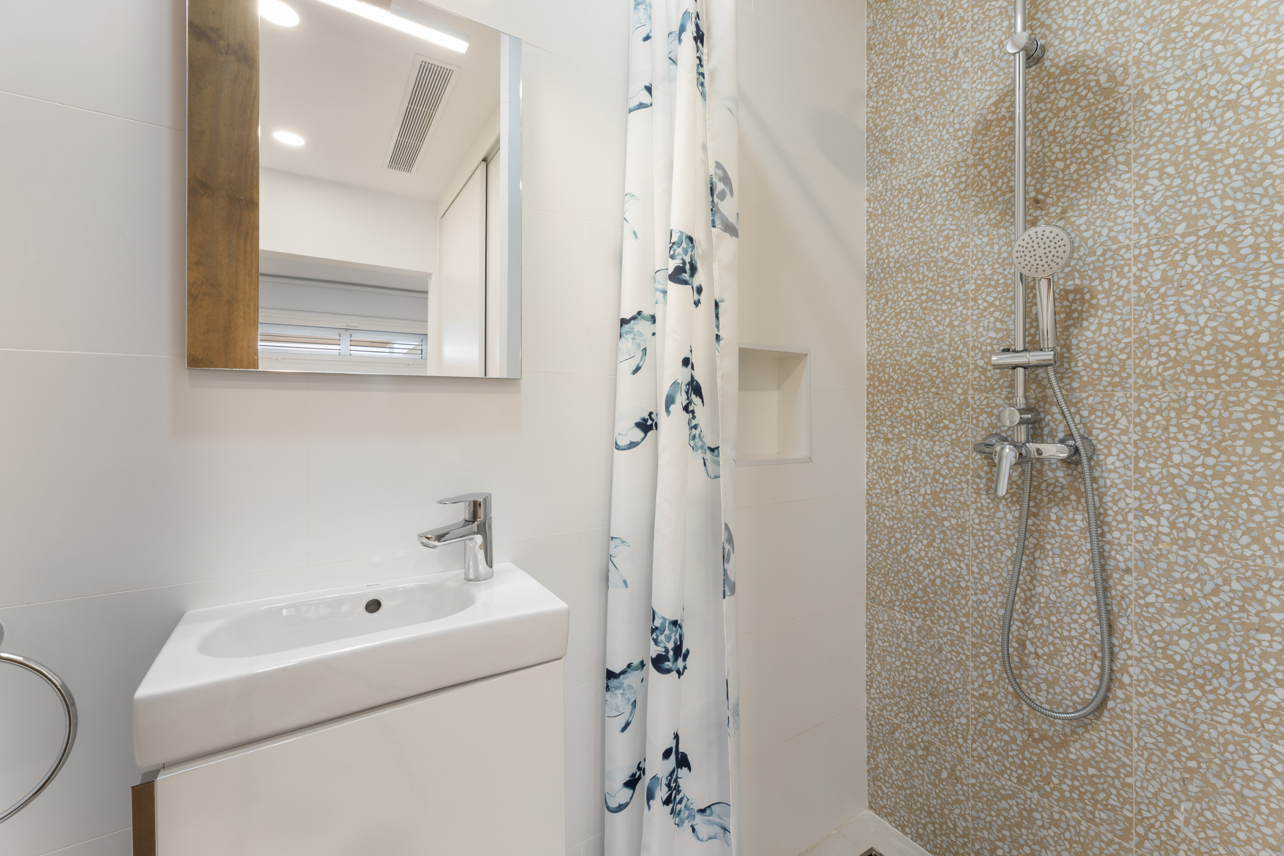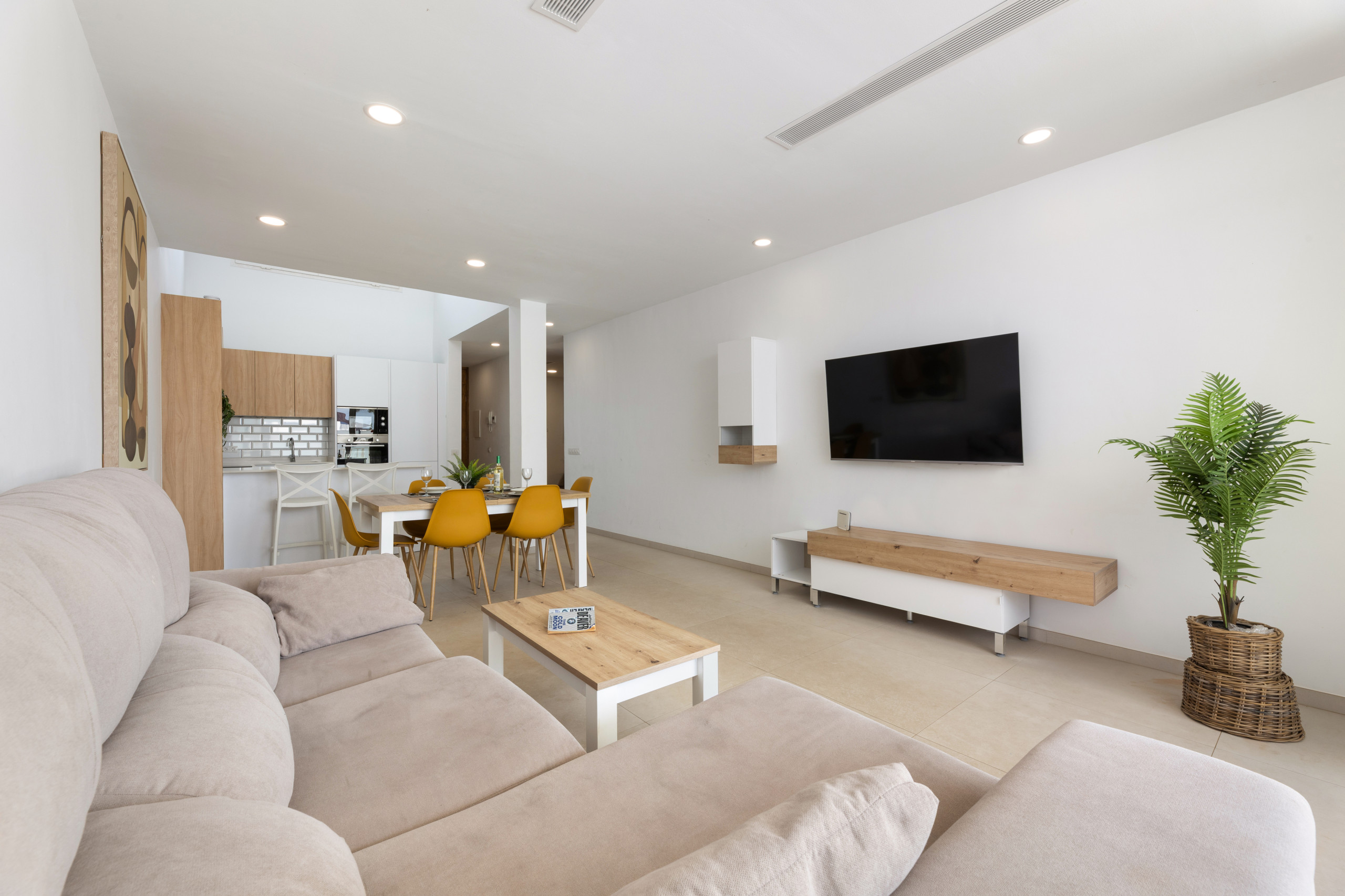 It has a spacious, well-equipped kitchen with an island. A good-sized living-dining room where you can relax. Its three bedrooms, two of them with a double bed and the other with two single beds, have air conditioning. Inside the accommodation, there are three bathrooms (two of them en suite), with a shower and one with a bathtub.