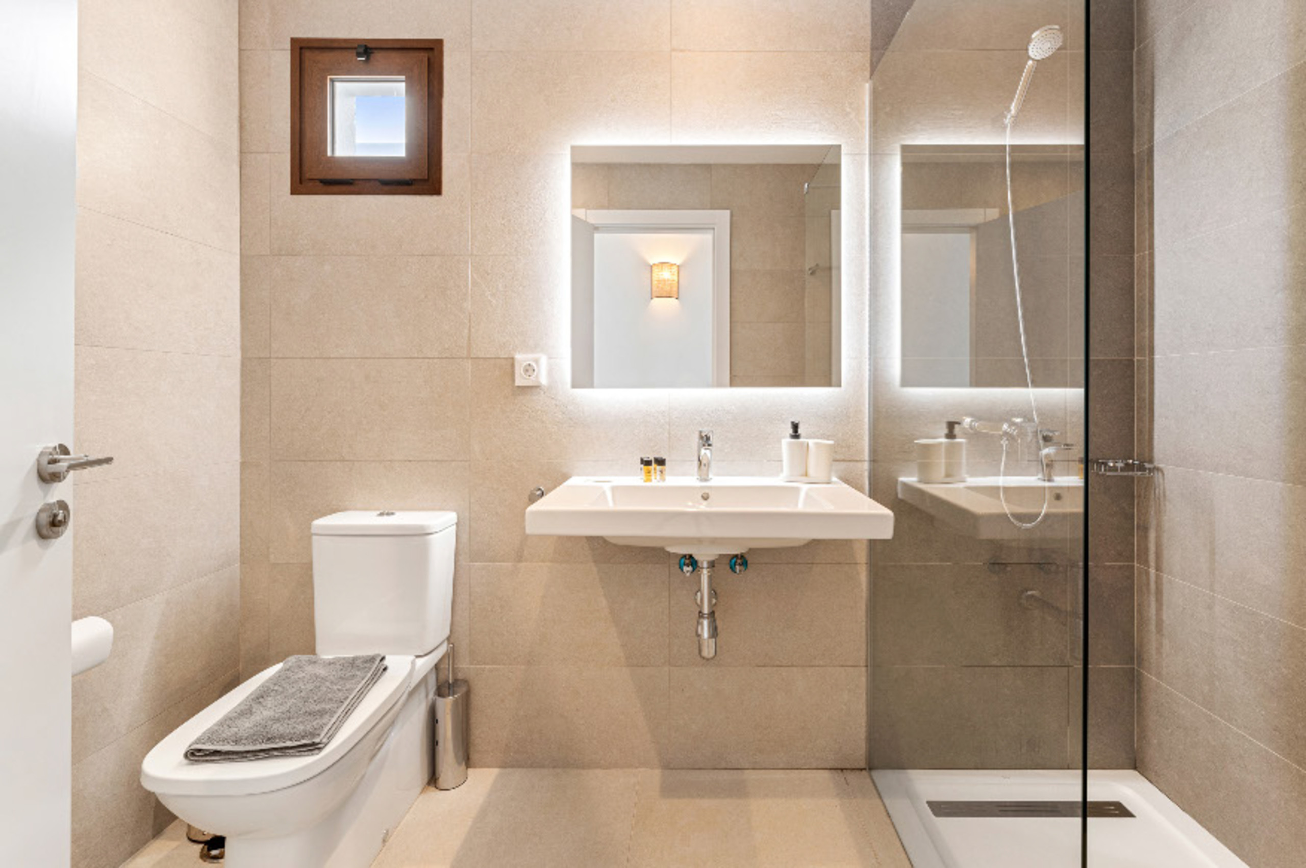 The interior of the villa stands out for its luminosity and contemporary design. It has 3 fully equipped bathrooms, two with shower and one with bathtub, facilitating the coexistence of guests. The kitchen is fully implemented with state-of-the-art appliances, including washing machine, dishwasher, oven, microwave, coffee maker and a wide variety of utensils that will make meal preparation a pleasant experience.