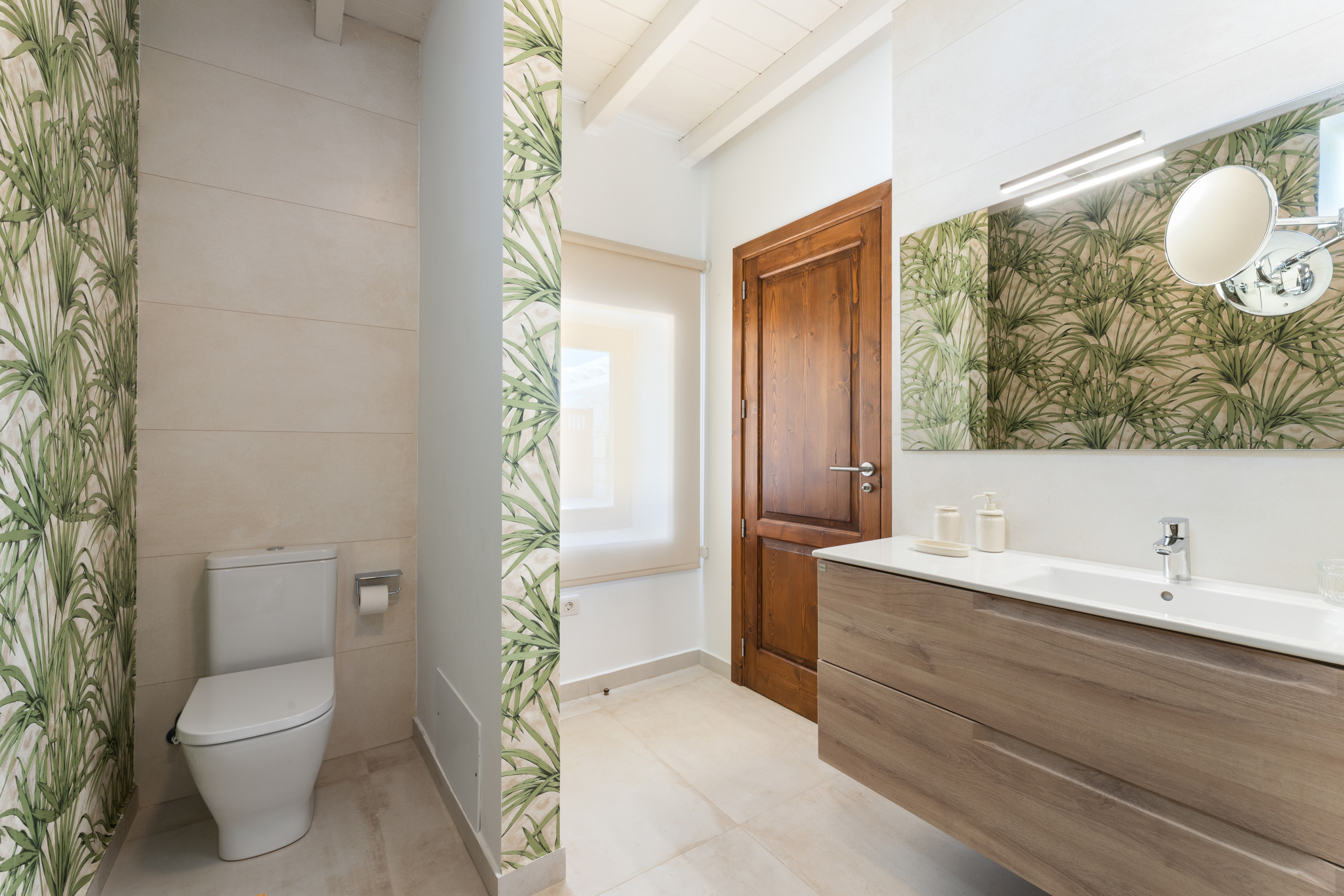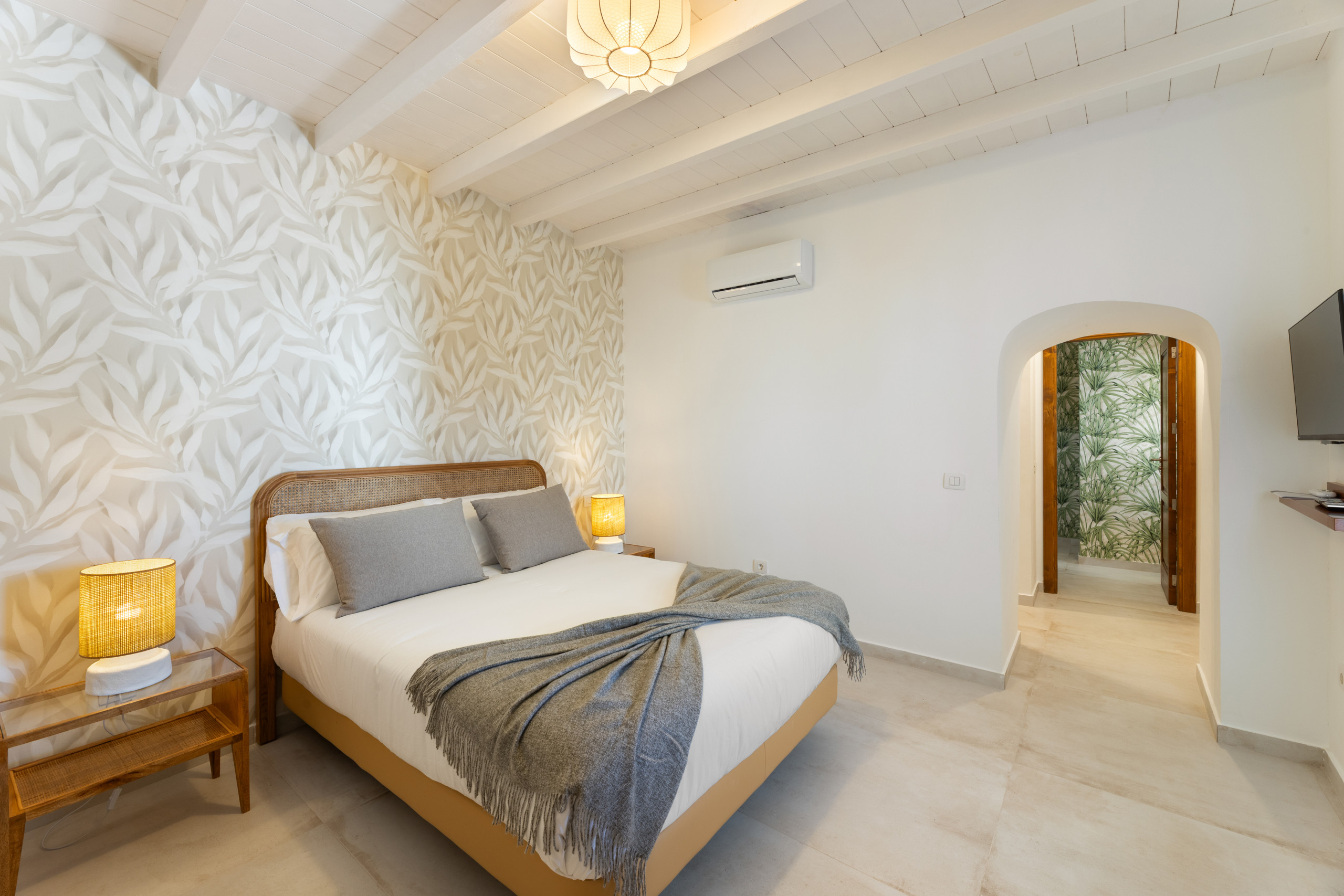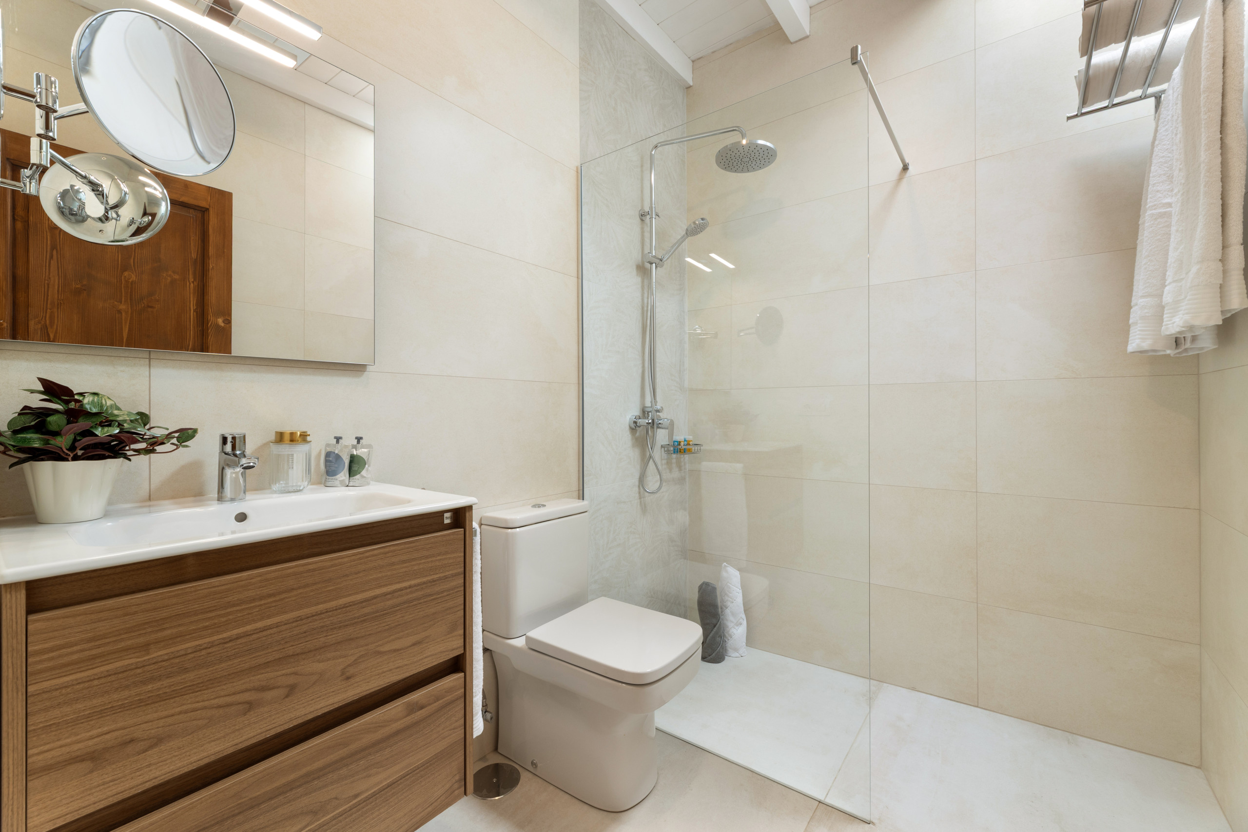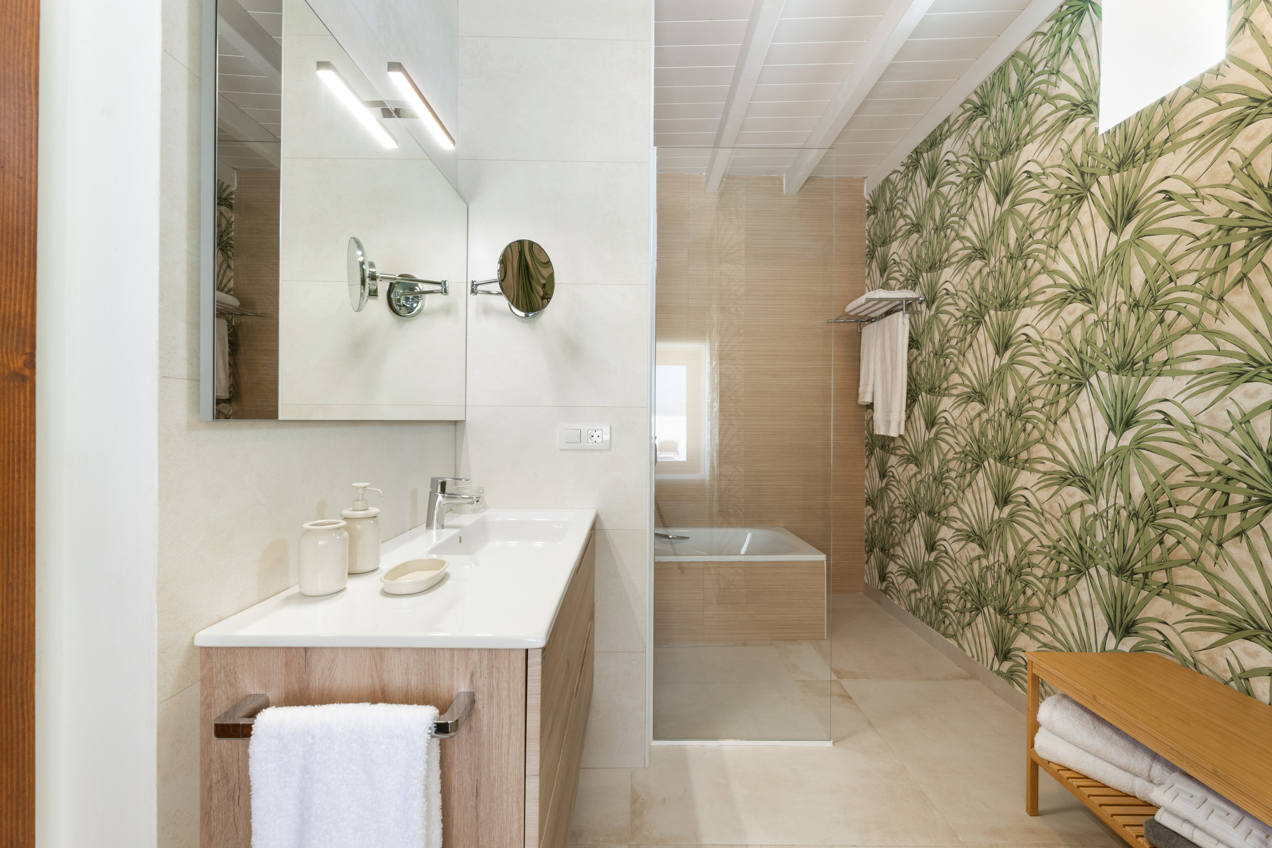 It consists of two spacious bedrooms, one with a double bed and another with two single beds, two bathrooms (one of them en suite), large built-in wardrobes, serene and elegant decoration.