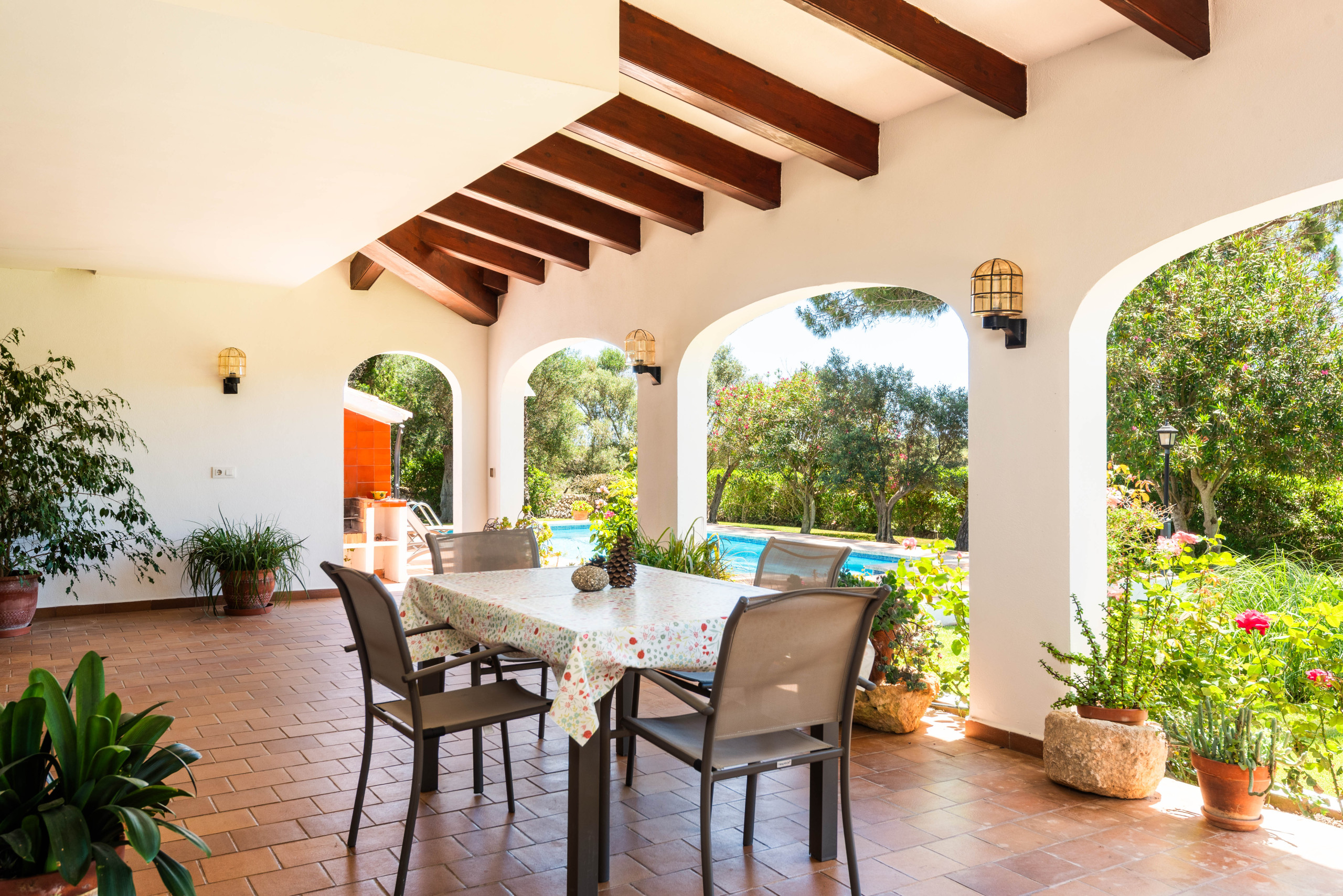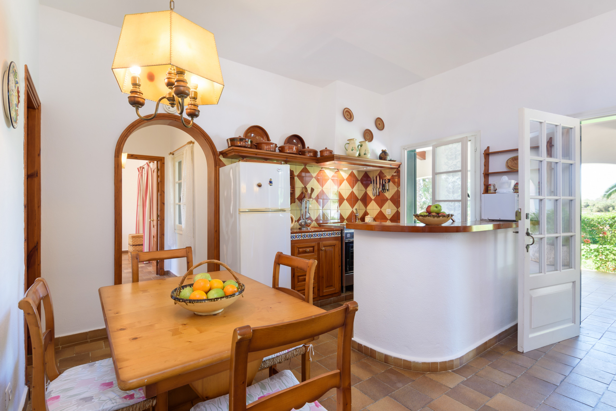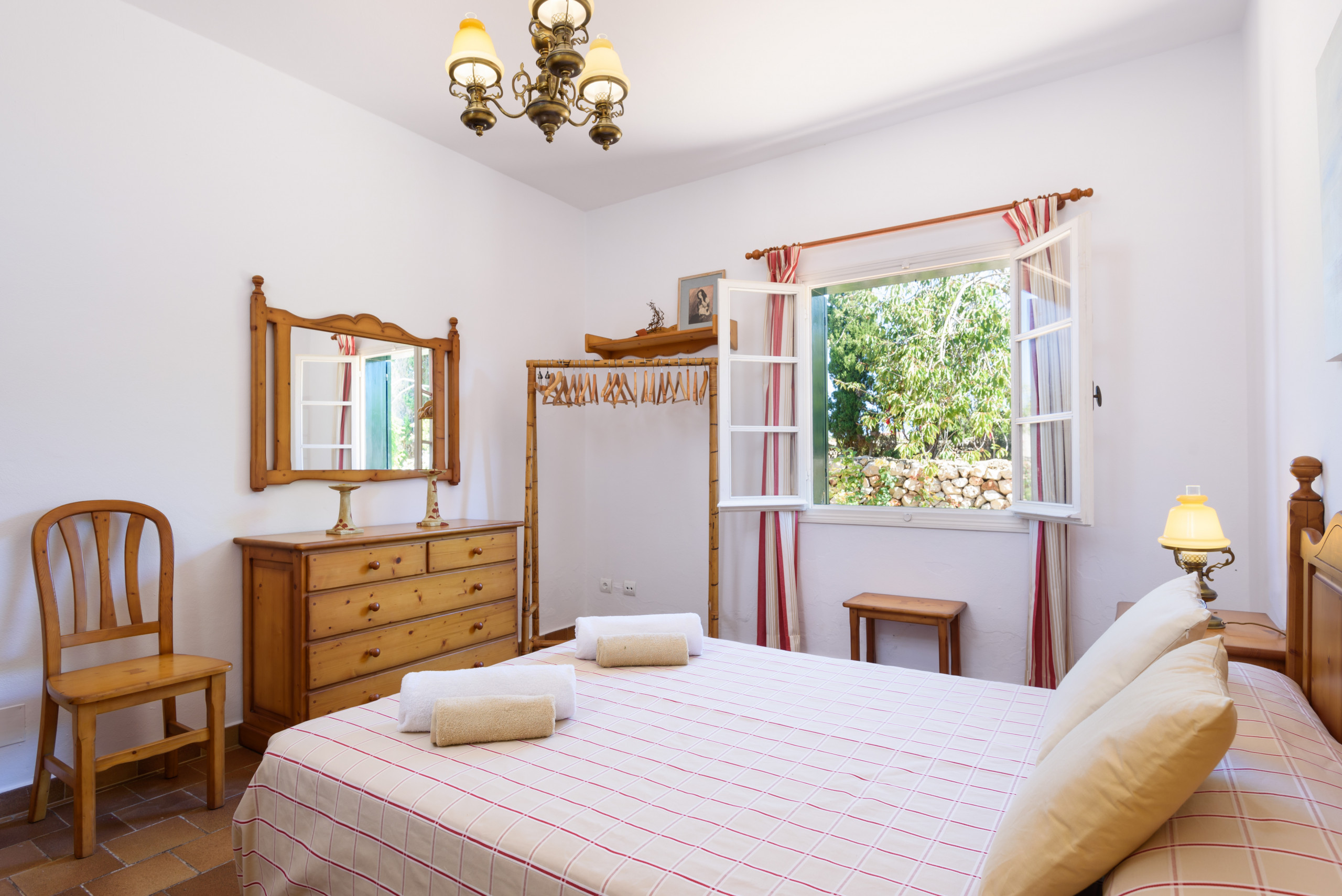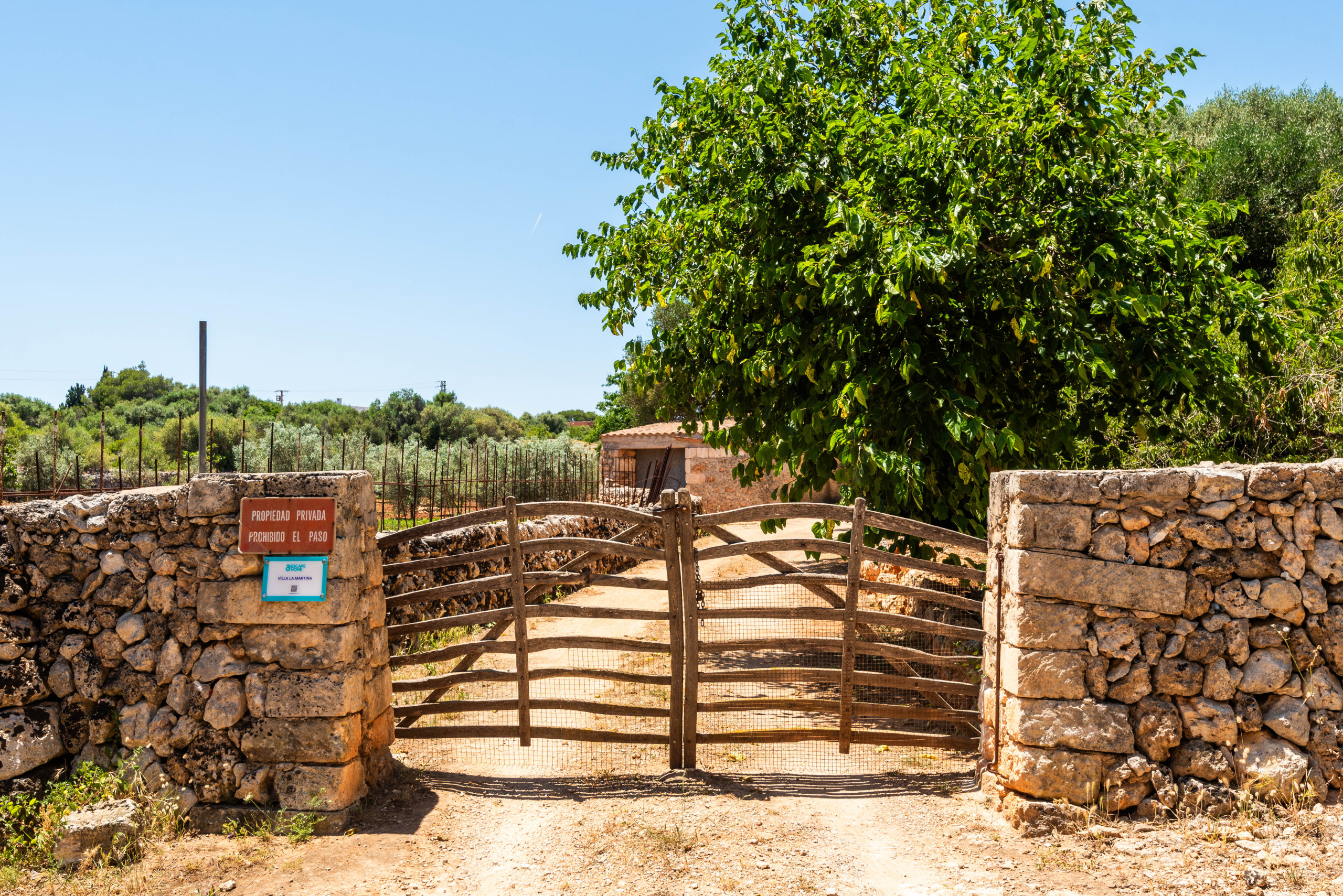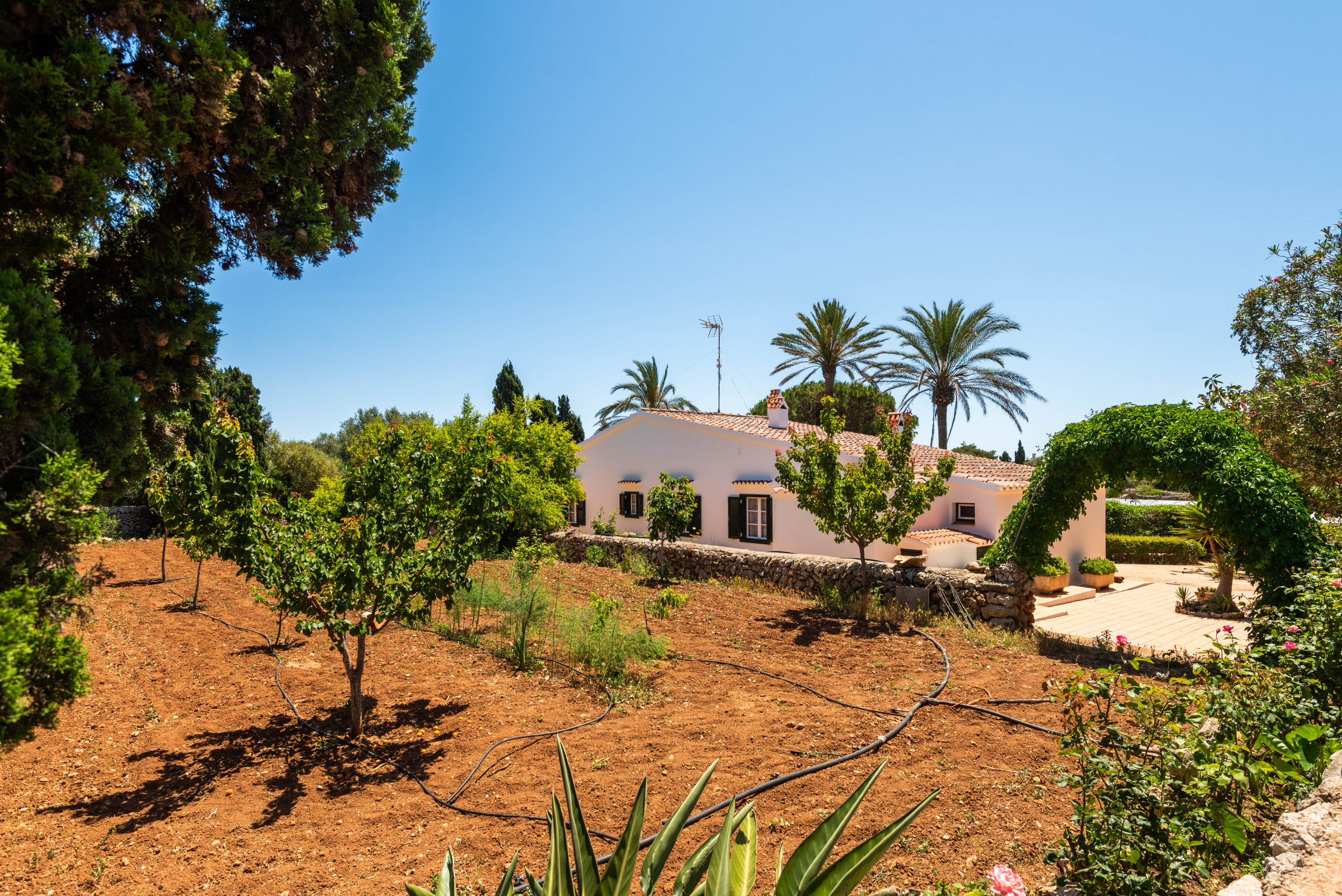 A country house that is located in a private agricultural environment of about 3 hectares. With an interior path that gives access to the entire land. It consists of a single floor to accommodate 4 people, ideal for a couple with children. Located in Pou Nou on the outskirts of Sant Lluís. It is 10 minutes by car from the beaches of the south coast such as Binibeca, Punta Prima. La Martina has a large Menorcan-style porch to enjoy long summer nights with a beautiful built-in barbecue, a large garden surrounded by flowers and plants with a pleasant natural grass where children can play.