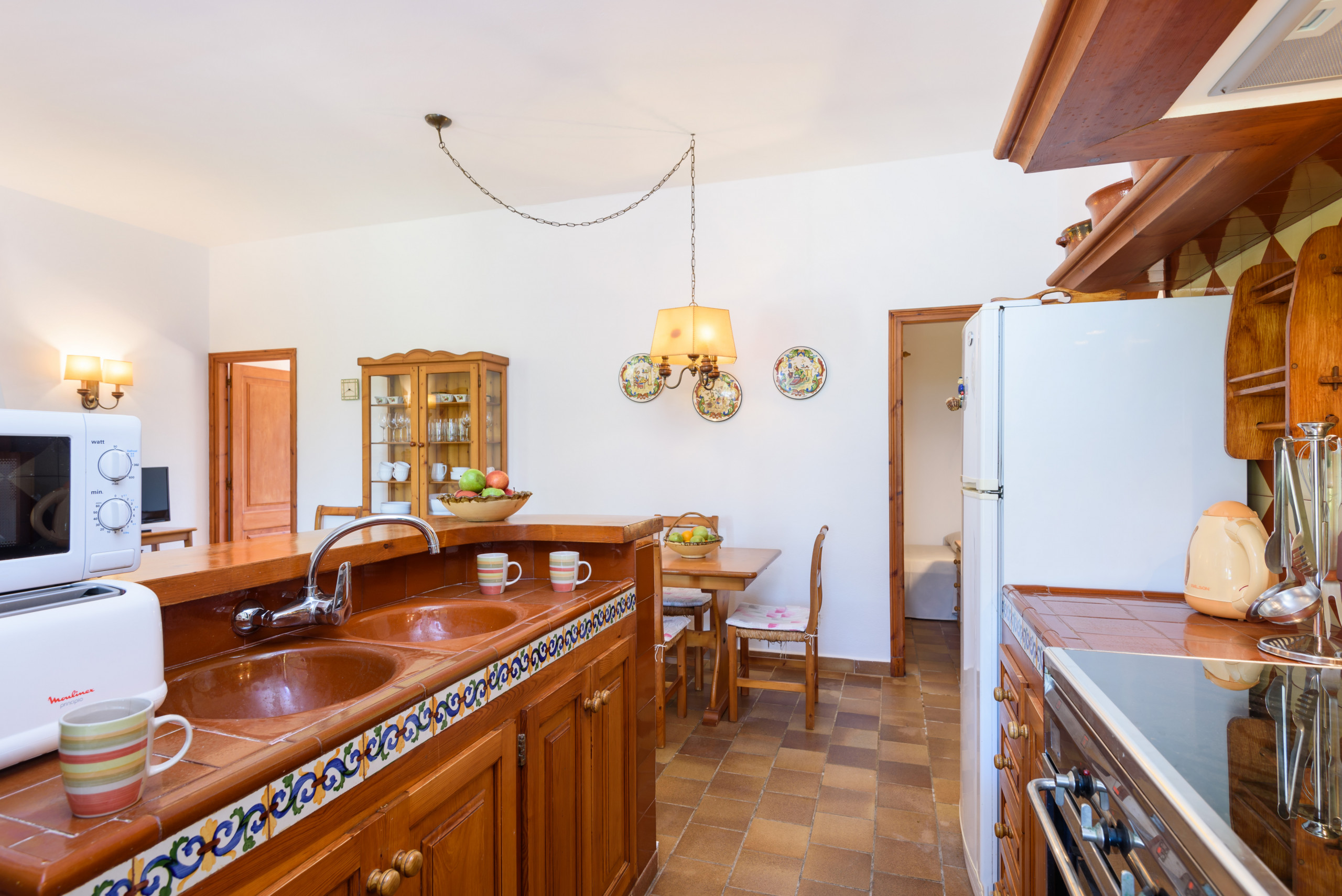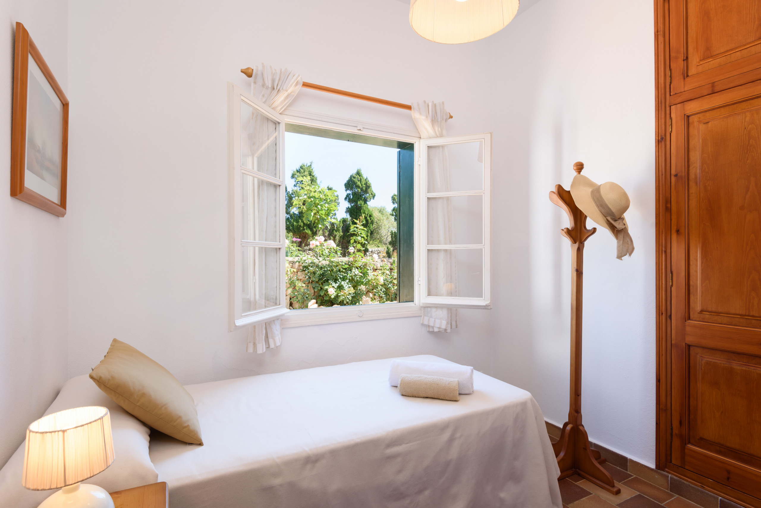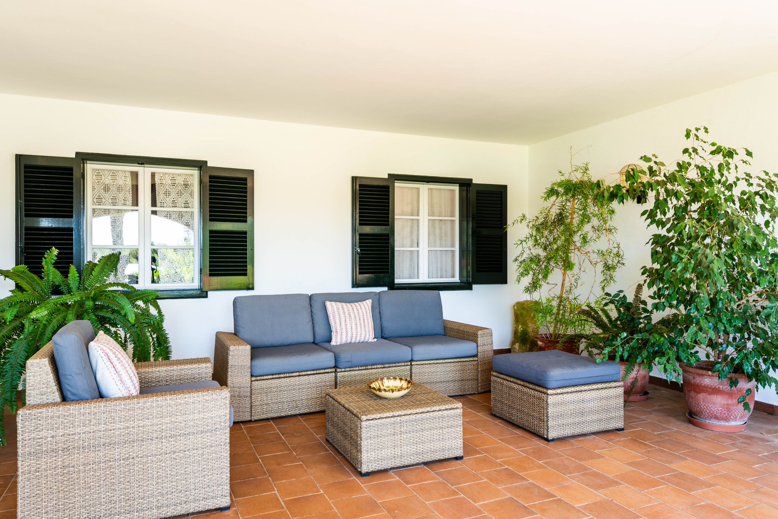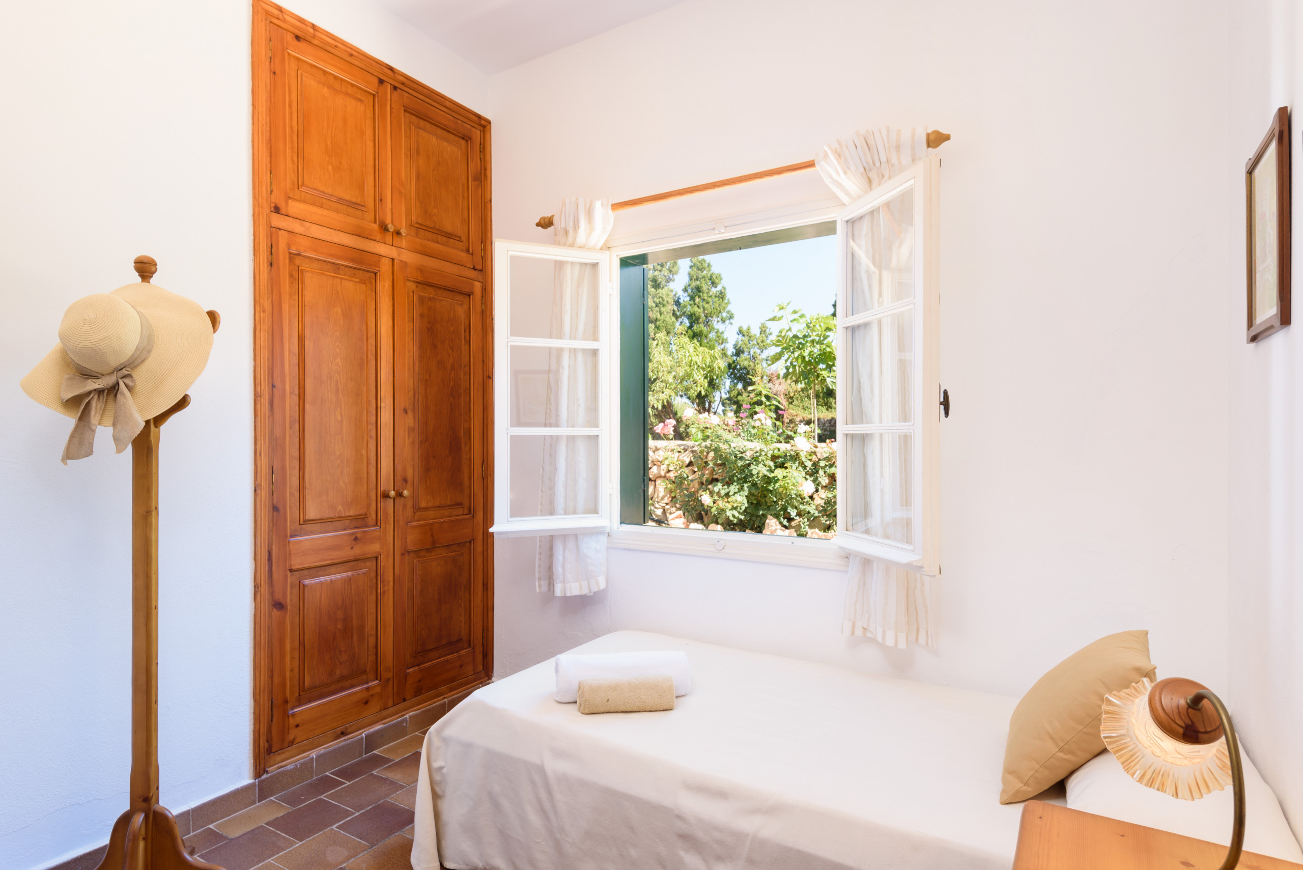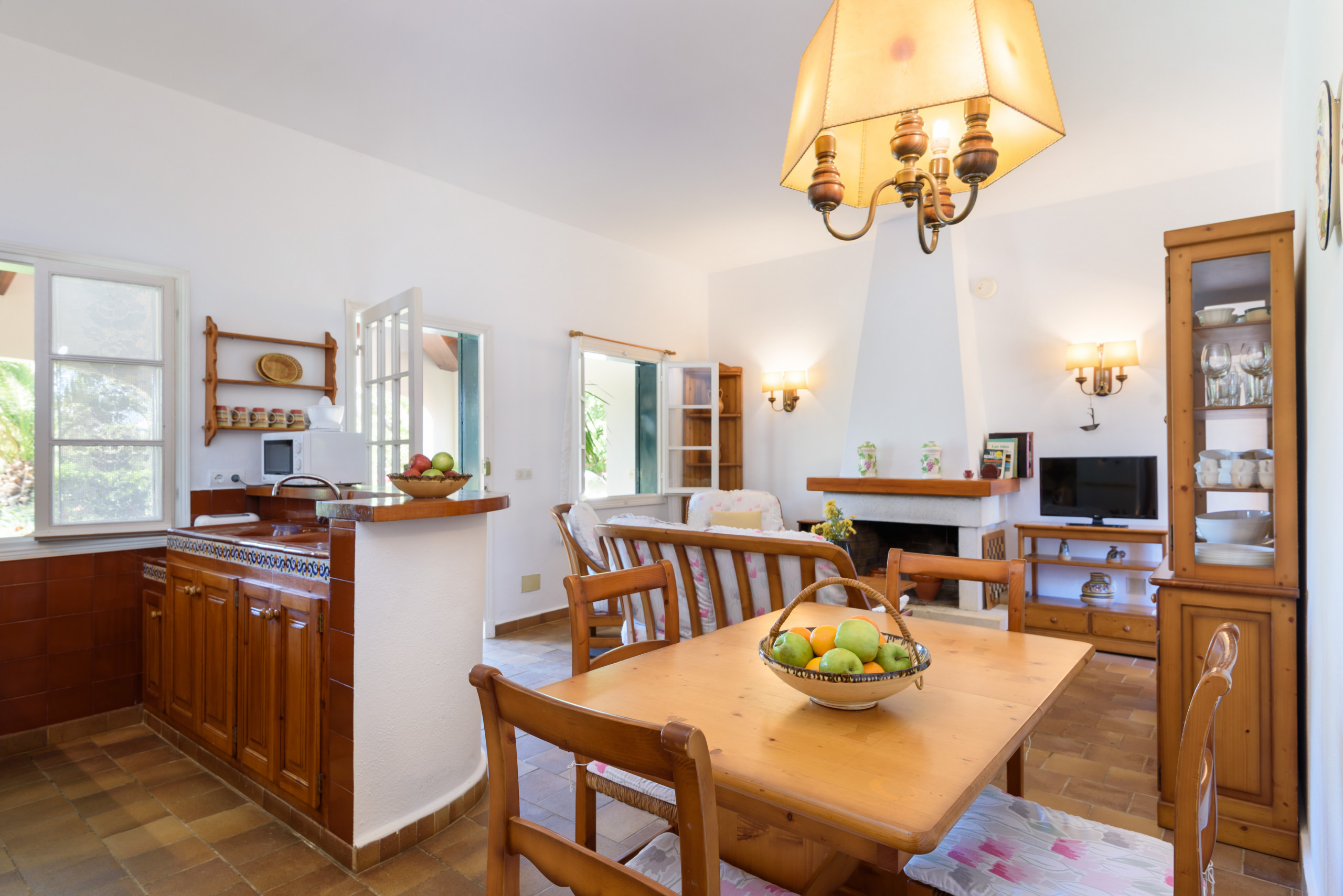A country house that is located in a private agricultural environment of about 3 hectares. With an interior path that gives access to the entire land. It consists of a single floor to accommodate 4 people, ideal for a couple with children. Located in Pou Nou on the outskirts of Sant Lluís. It is 10 minutes by car from the beaches of the south coast such as Binibeca, Punta Prima. La Martina has a large Menorcan-style porch to enjoy long summer nights with a beautiful built-in barbecue, a large garden surrounded by flowers and plants with a pleasant natural grass where children can play.