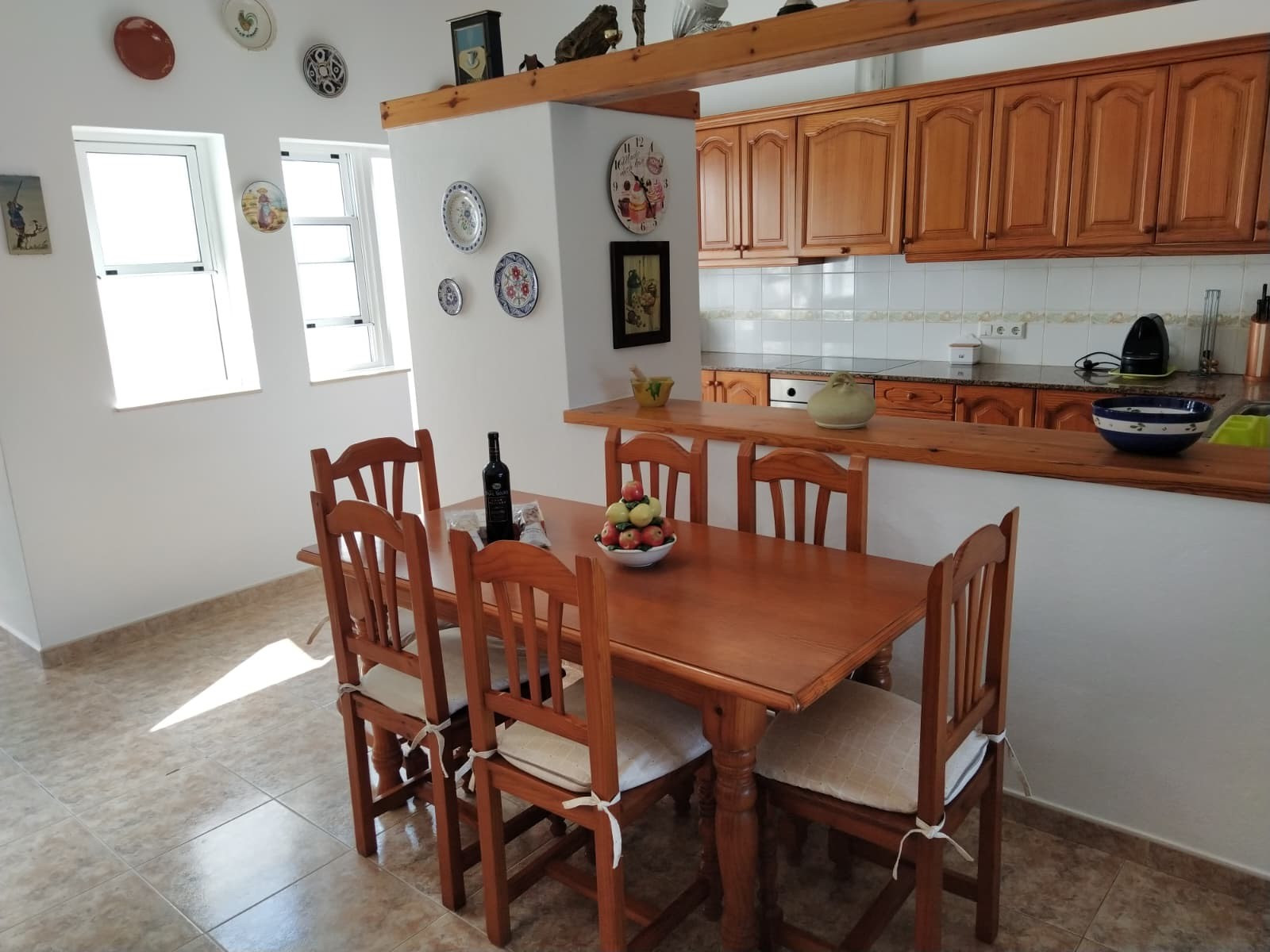 It features a fully equipped modern kitchen, with a bar and high-quality appliances. It also has an independent garage with a washing machine.