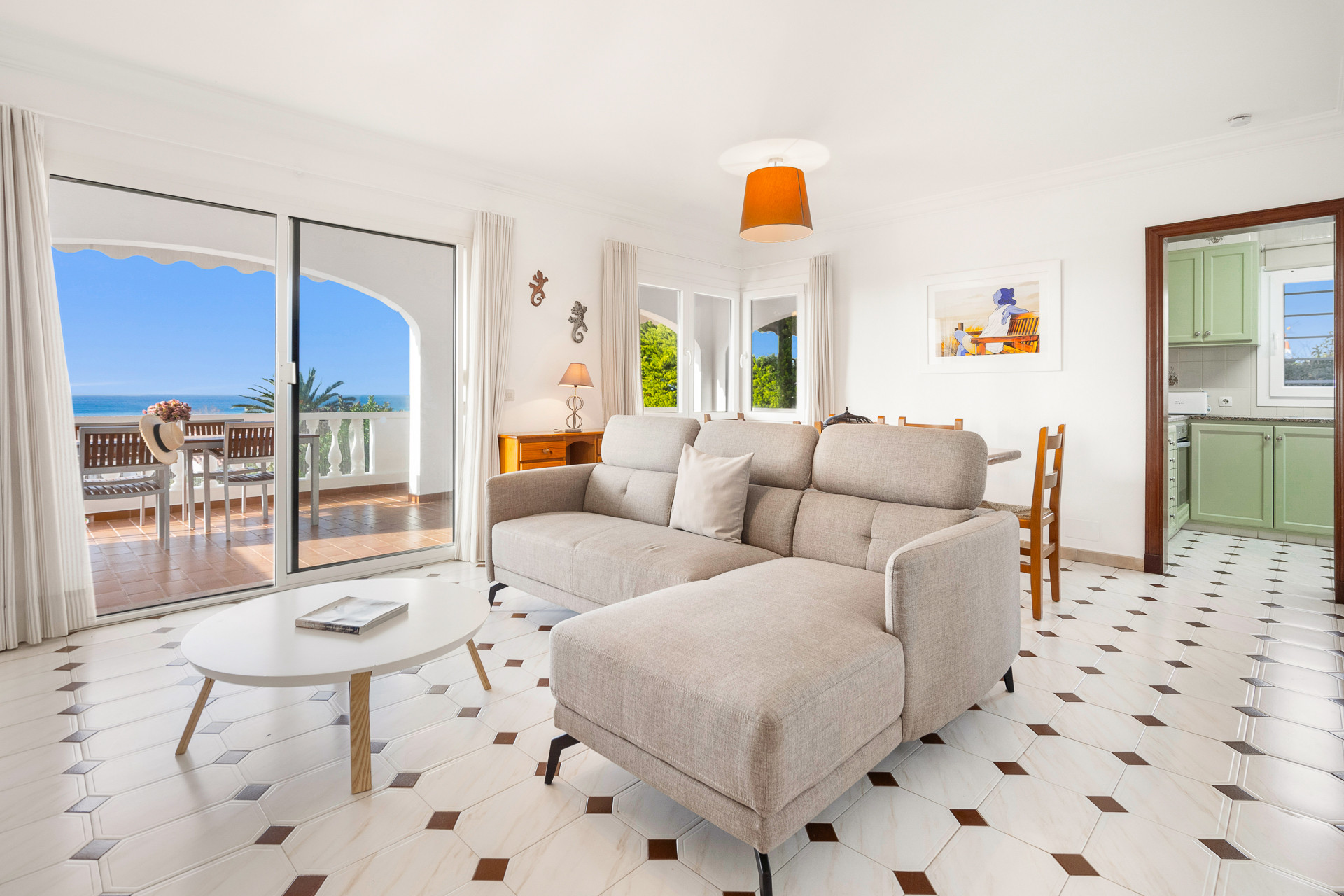 The air-conditioned living room and dining room are equipped with TV with digital channels and free Wifi, comfortably furnished and equipped, with access to a fantastic terrace with stunning sea views and a practical built-in barbecue.