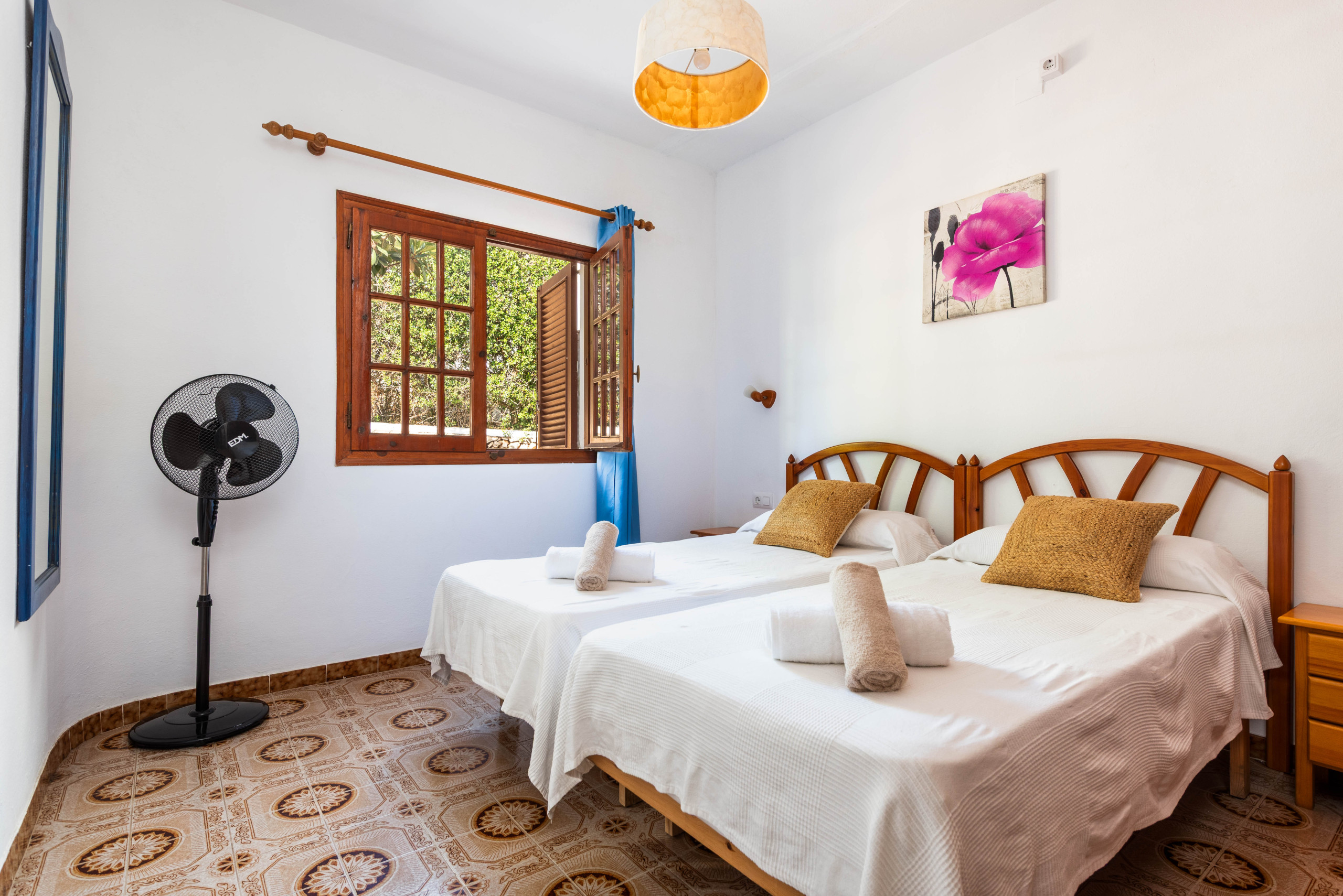 The villa has three bedrooms, the main room, a little larger and with access to the terrace with sea views, has a double bed, air conditioning and an en-suite bathroom with a bathtub, and the other 2 bedrooms ( with fans ) with 2 single beds each . Finally a separate bathroom with bathtub.