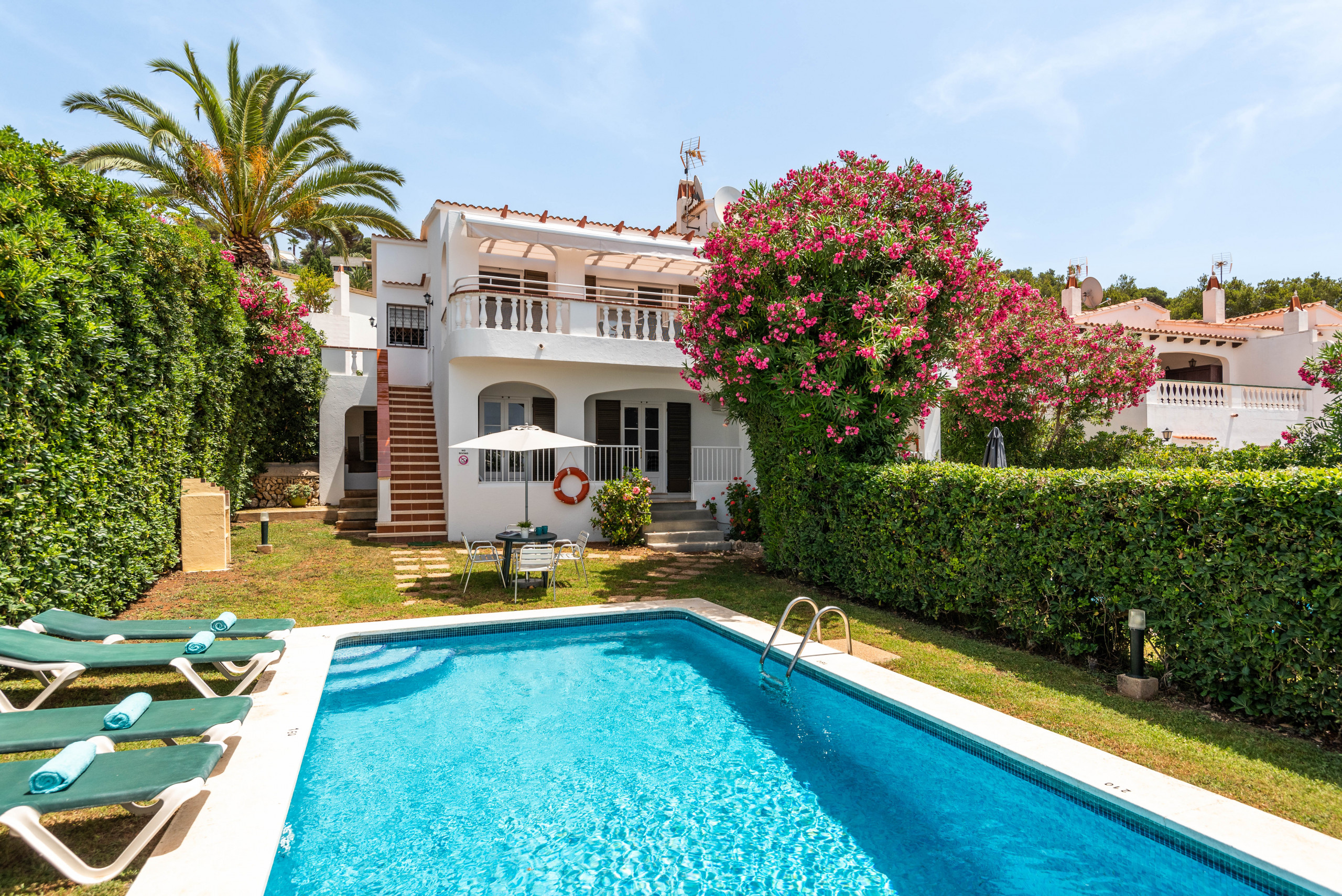 This beautiful two-storey terraced house with a private pool and excellent views of the sea and the Son Bou beach is located in the Torre Solí Nou residential area. On the upper floor there is the common living-dining room area with air conditioning, a fully equipped kitchen, a bathroom, a double bedroom and the outdoor laundry room. There is also a covered terrace with a barbecue area, offering excellent sea views.