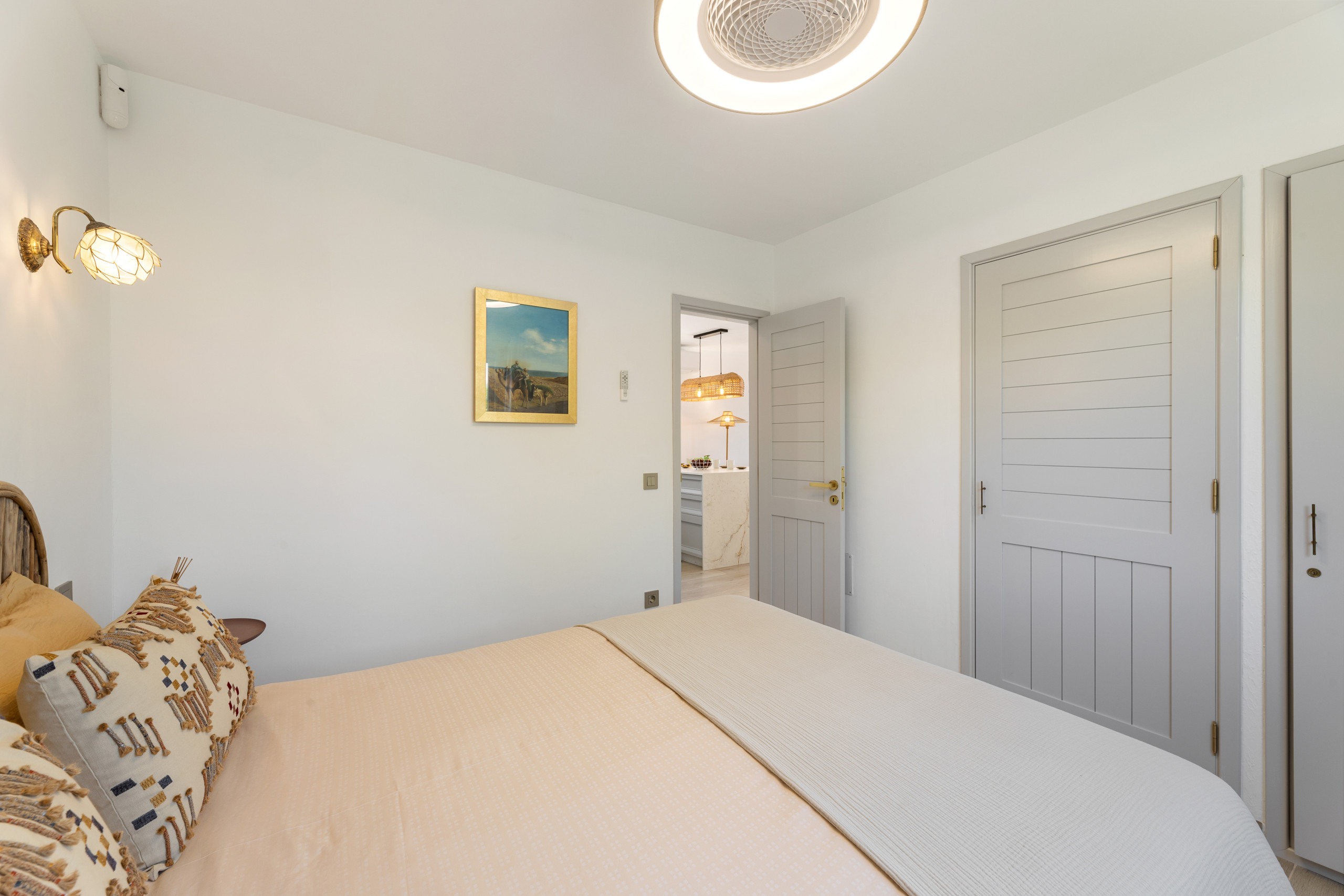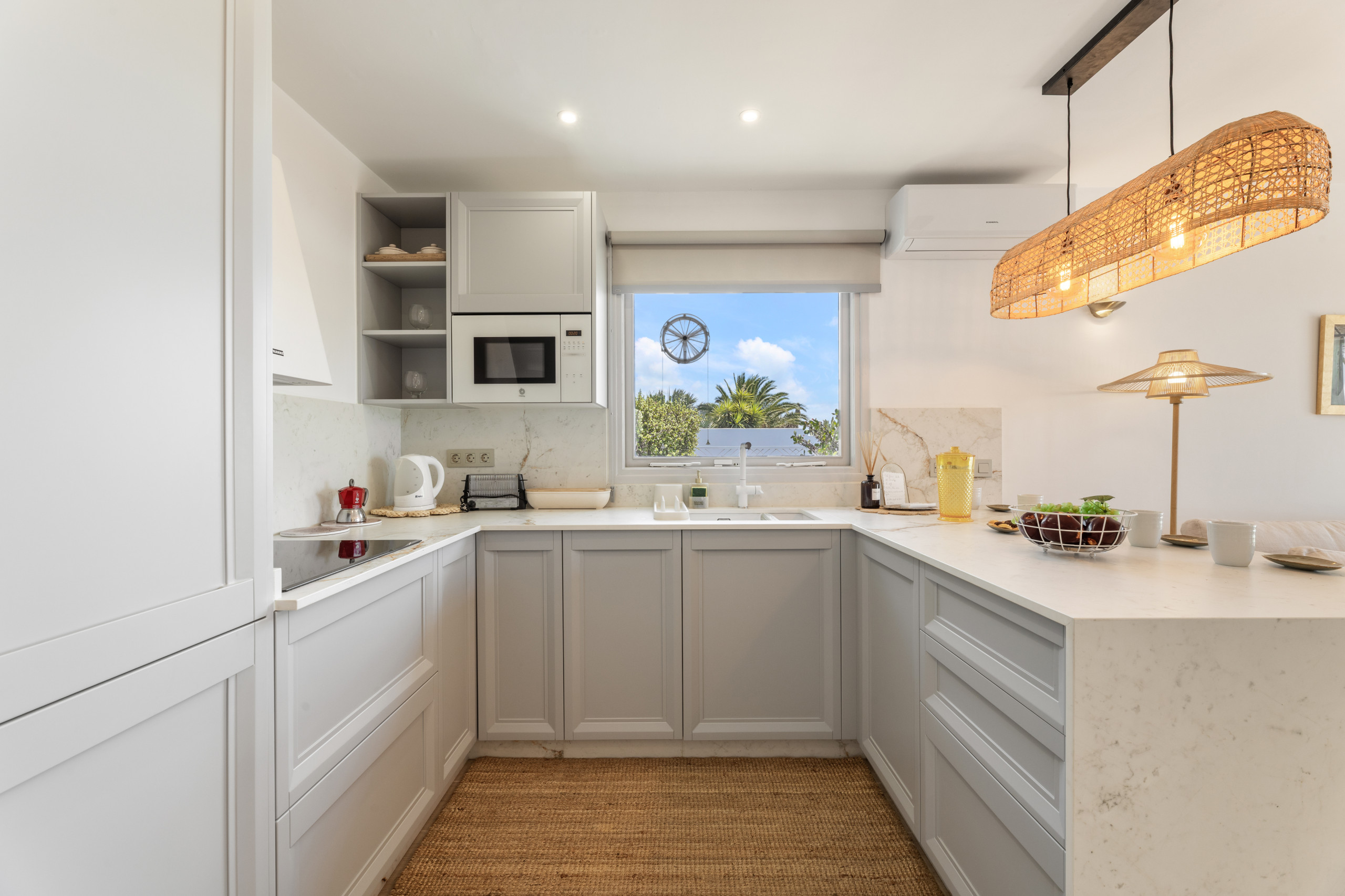 The interior of the villa is fully equipped to ensure a comfortable stay. It has air conditioning, free WiFi and a fully equipped American kitchen with appliances such as a fridge, oven, microwave, coffee maker, toaster, kettle and juicer. The villa has 2 bathrooms with shower, iron and television to complete the amenities.