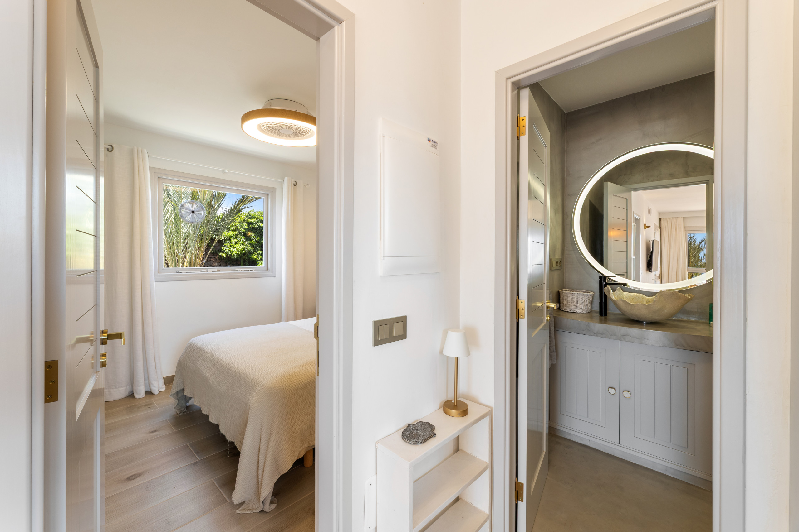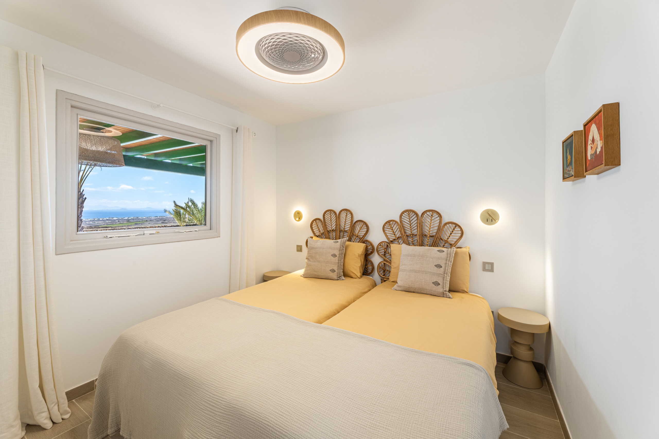 Villa Los Aljibes is a cosy refuge located in Tías, perfect for groups of up to 6 people looking for a relaxing holiday in Lanzarote. This modern villa offers 3 bedrooms with capacity for 6 people, distributed in 2 bedrooms with double beds and 1 bedroom with two single beds, ideal for families or groups of friends.