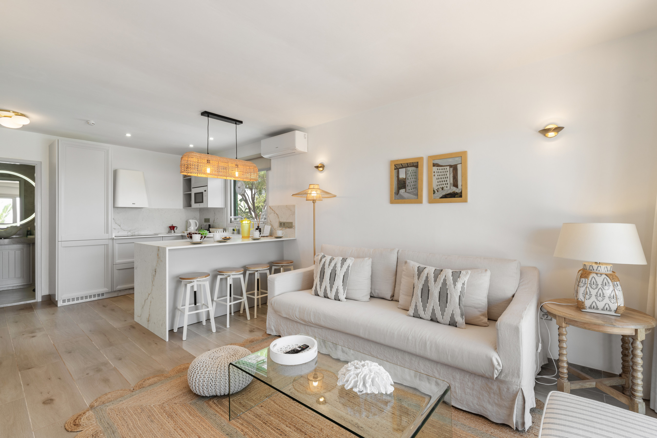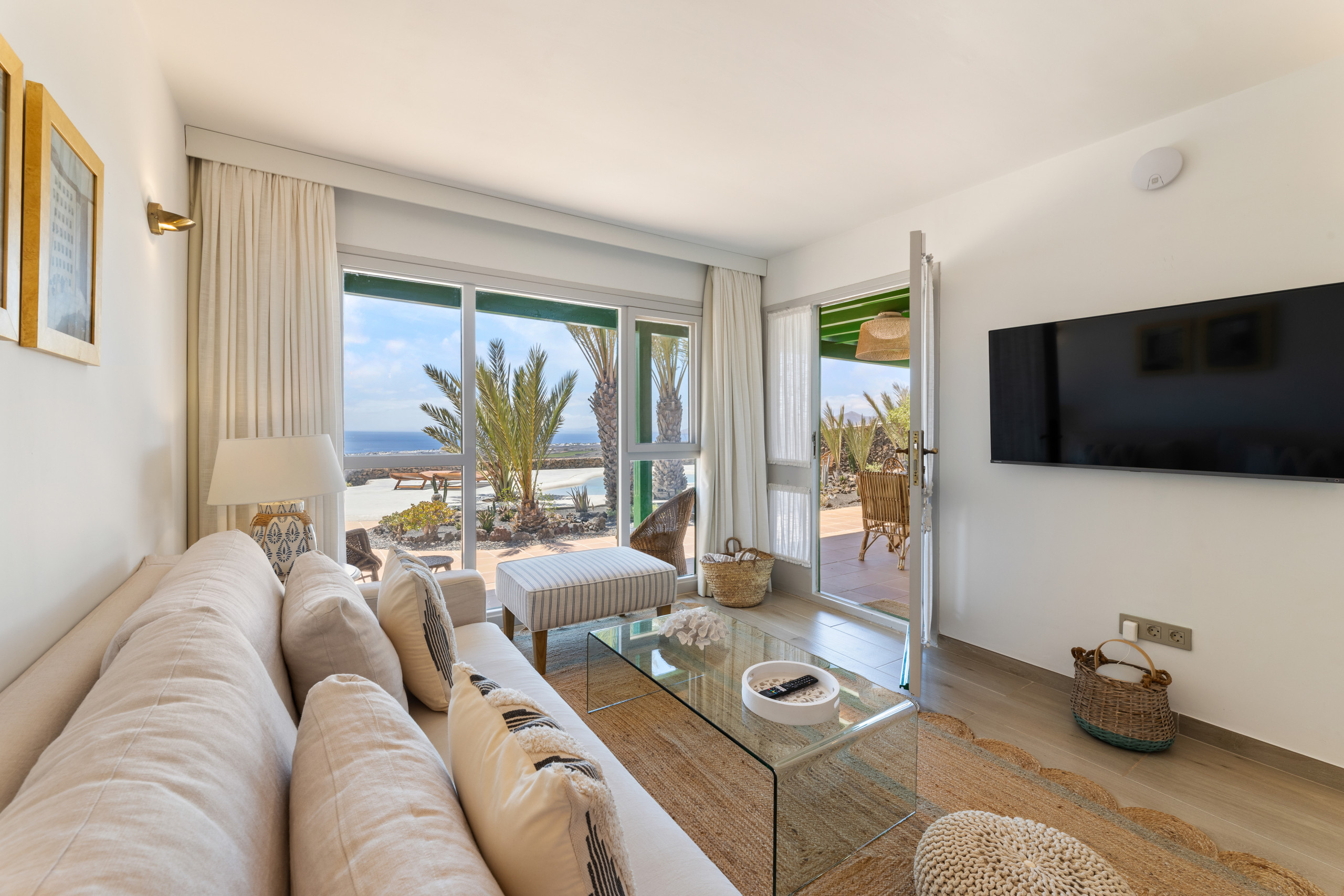 spacious double living room with air conditioning, Smart TV, wifi, with glass doors