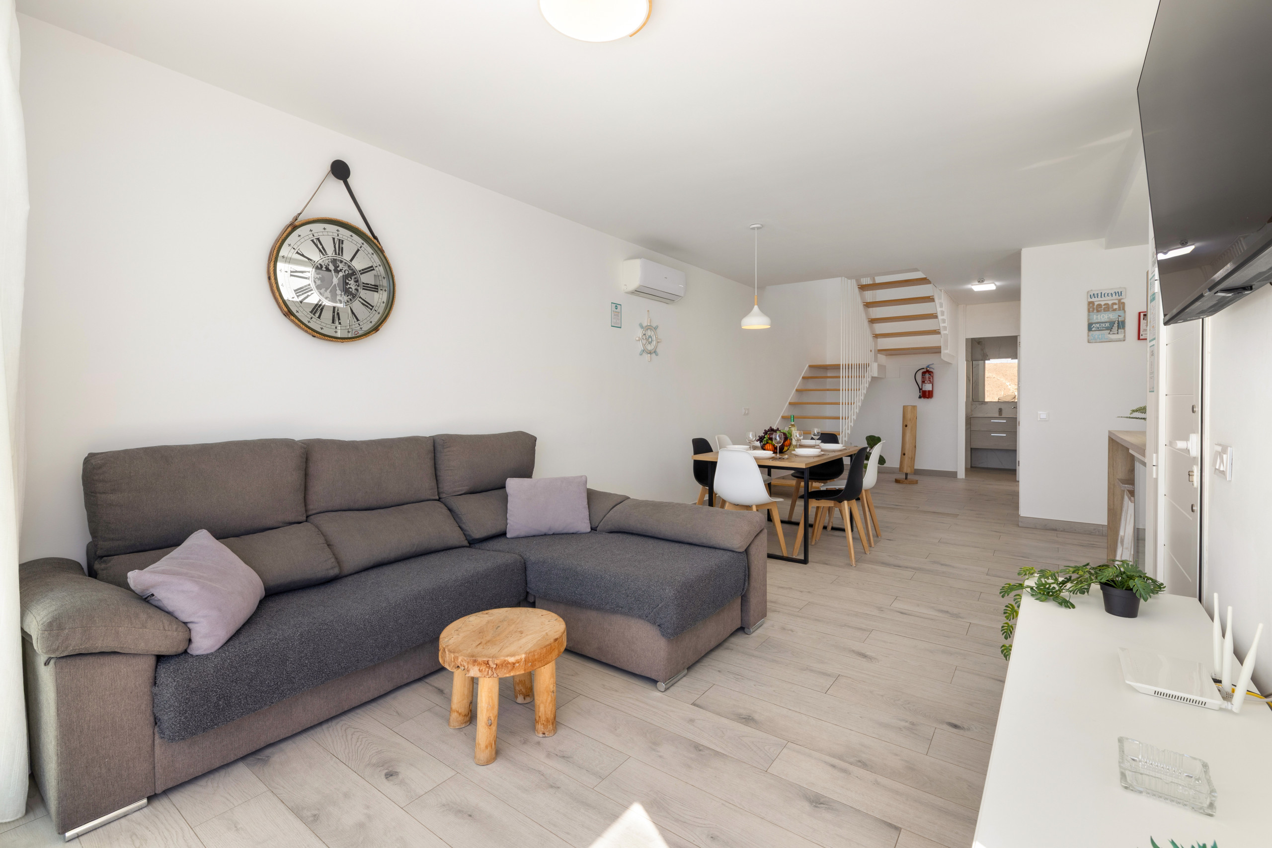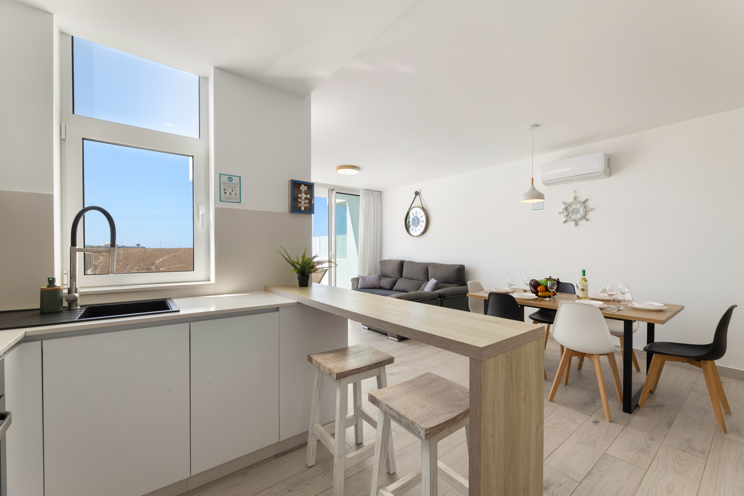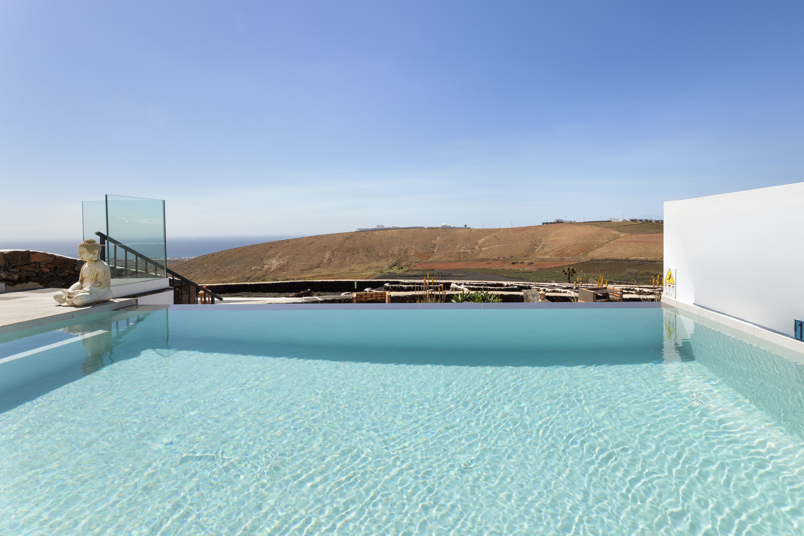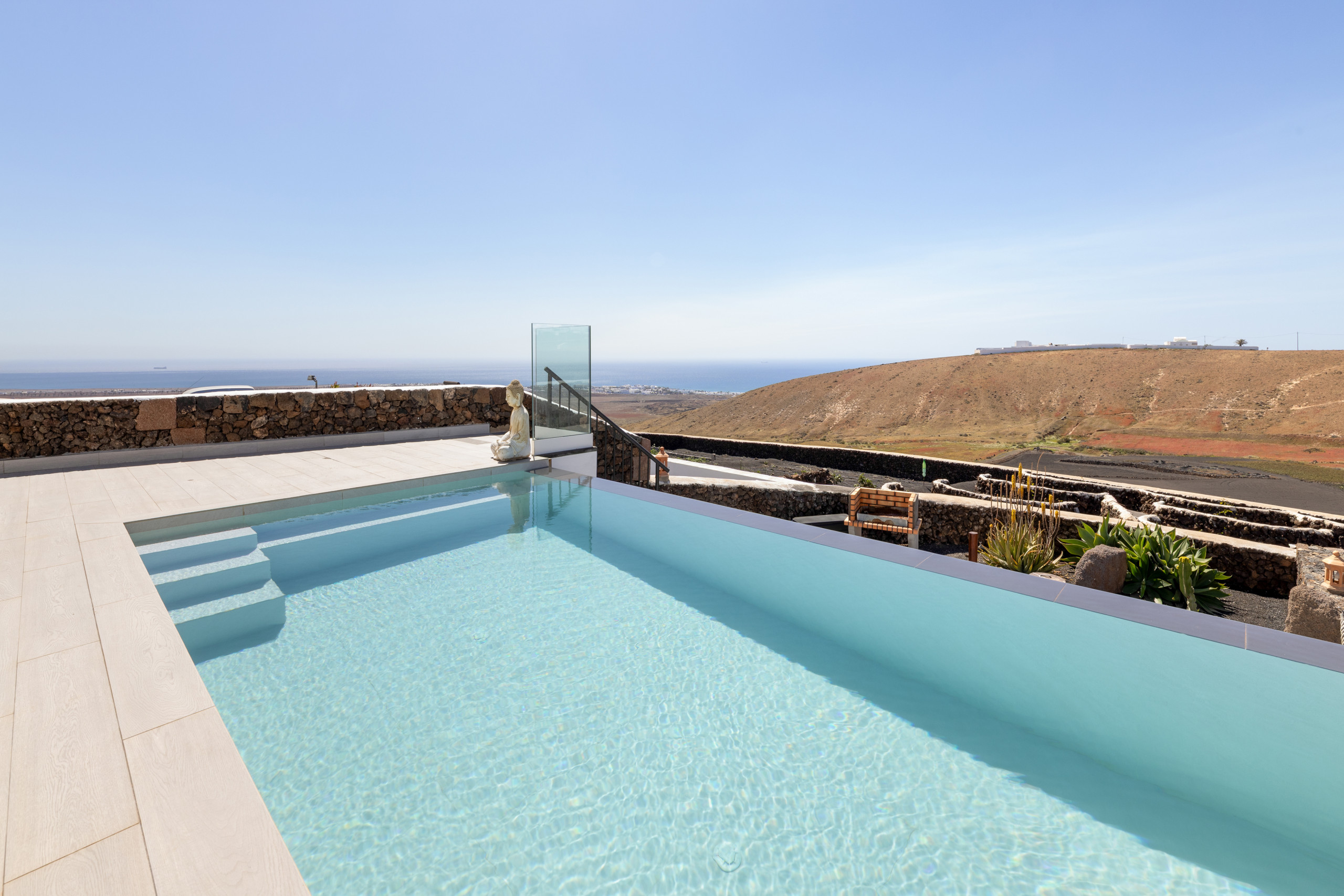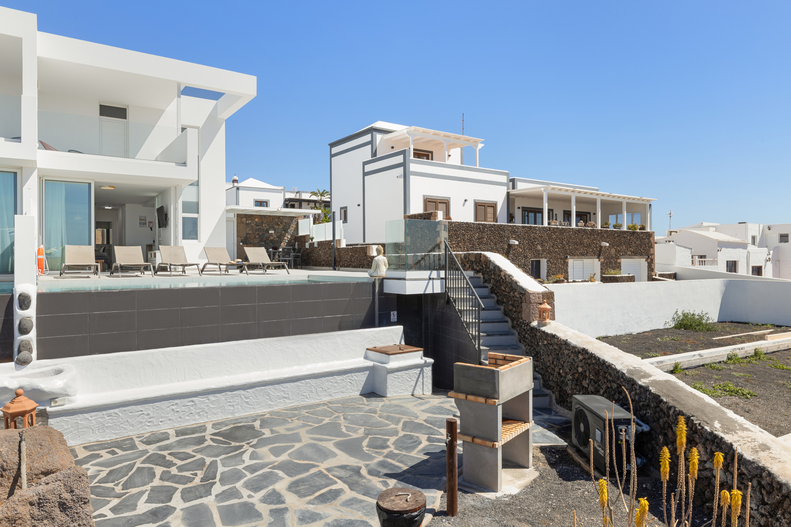 The villa in Tías has 3 bedrooms and has capacity for 6 people. The villa is 114 m². It has views of waterfront and the mountain. The property is located 0 m from the hospital, 1 km from San Antonio Panificadora coffee shop, 1 km from El Manduco the restaurant, 1 km from La Ermita the restaurant, 4 km from Los Pocillos sand beach, 5 km from Aeropuerto César Manrique-Lanzarote international airport, 5 km from Matagorda sand beach, 5 km from Playa Grande Puerto del Carmen sand beach.The accommodation is equipped with the following items: garden, garden furniture, fenced garden, terrace, washing machine, barbecue, safe, internet (Wi-Fi), hair dryer, balcony, air-conditioned, private heated swimming pool, open-air parking the same building, TV.the kitchen, refrigerator, microwave, oven, freezer, dishwasher, dishes/cutlery, kitchen utensils, coffee machine, toaster, kettle and juicer are provided.