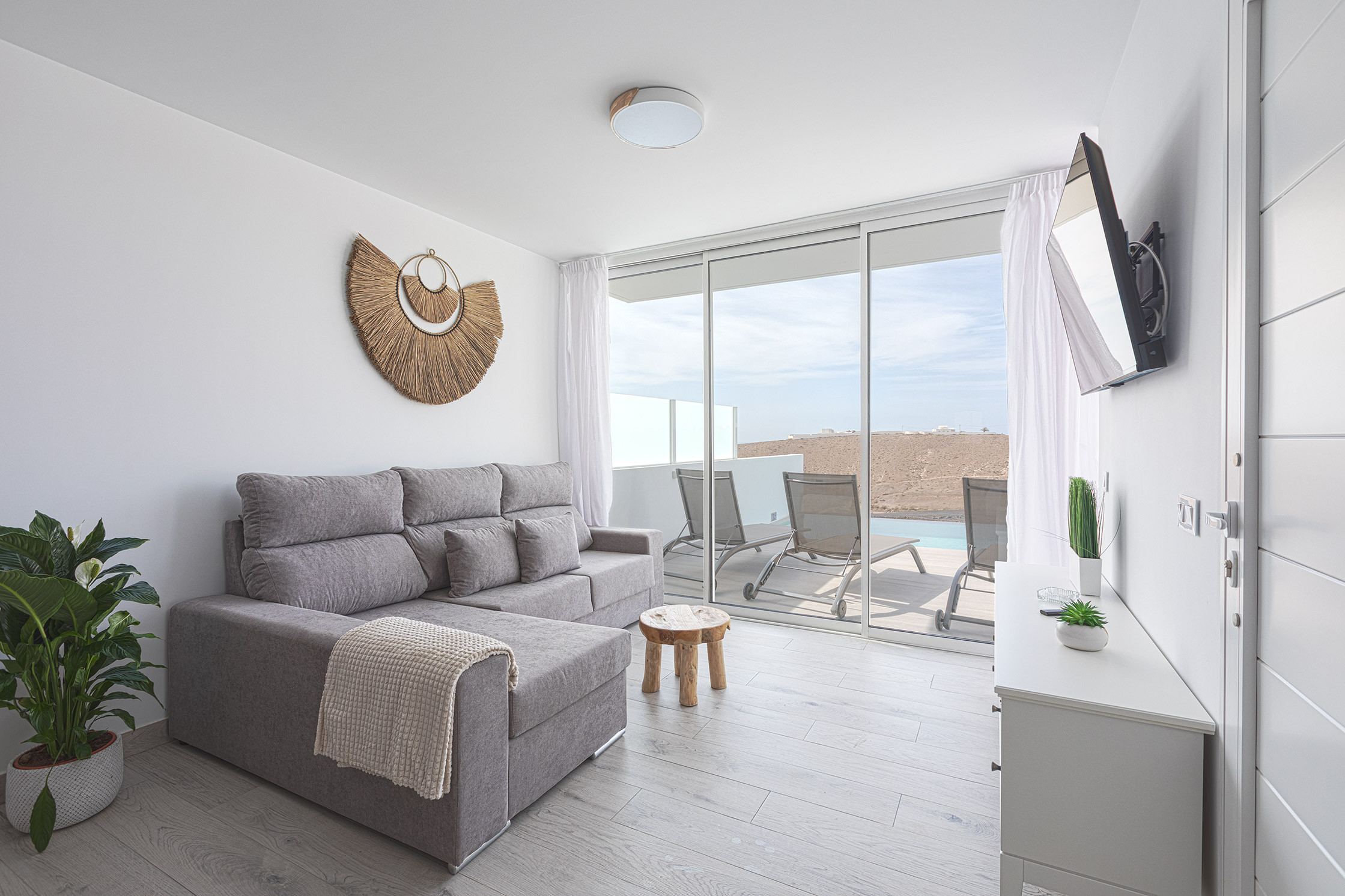 The villa in Tías has 3 bedrooms and has capacity for 6 people. The villa is 114 m². It has views of waterfront and the mountain. The property is located 0 m from the hospital, 1 km from San Antonio Panificadora coffee shop, 1 km from El Manduco the restaurant, 1 km from La Ermita the restaurant, 4 km from Los Pocillos sand beach, 5 km from Aeropuerto César Manrique-Lanzarote international airport, 5 km from Matagorda sand beach, 5 km from Playa Grande Puerto del Carmen sand beach.The accommodation is equipped with the following items: garden, garden furniture, fenced garden, terrace, washing machine, barbecue, safe, internet (Wi-Fi), hair dryer, balcony, air-conditioned, private heated swimming pool, open-air parking the same building, TV.the kitchen, refrigerator, microwave, oven, freezer, dishwasher, dishes/cutlery, kitchen utensils, coffee machine, toaster, kettle and juicer are provided.