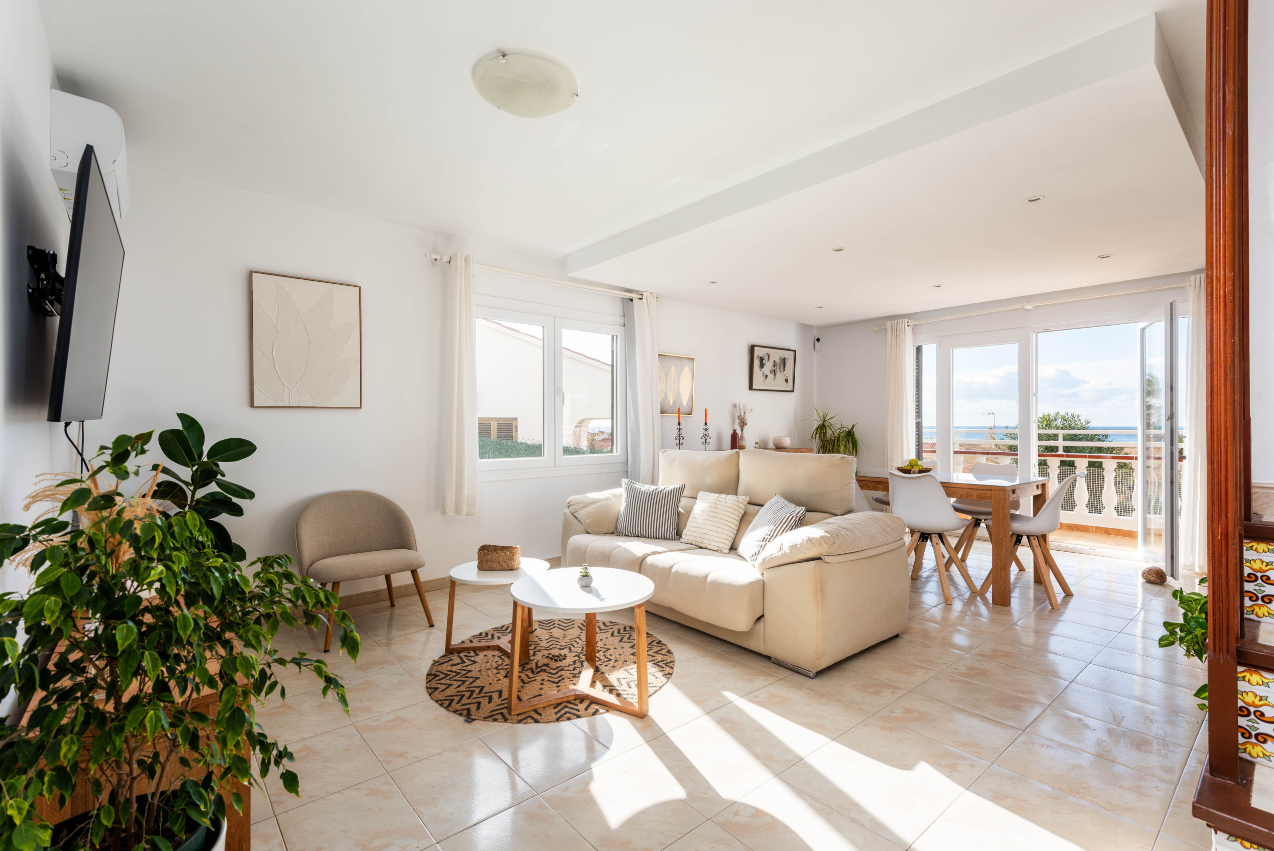 Villa Dolfins is a charming 100 m² Mediterranean-style villa, located in the quiet Torre Solí urbanisation, just minutes from the famous Son Bou beach. With capacity for up to 5 people, it is the ideal accommodation for families or small groups seeking comfort, privacy and sea views.
