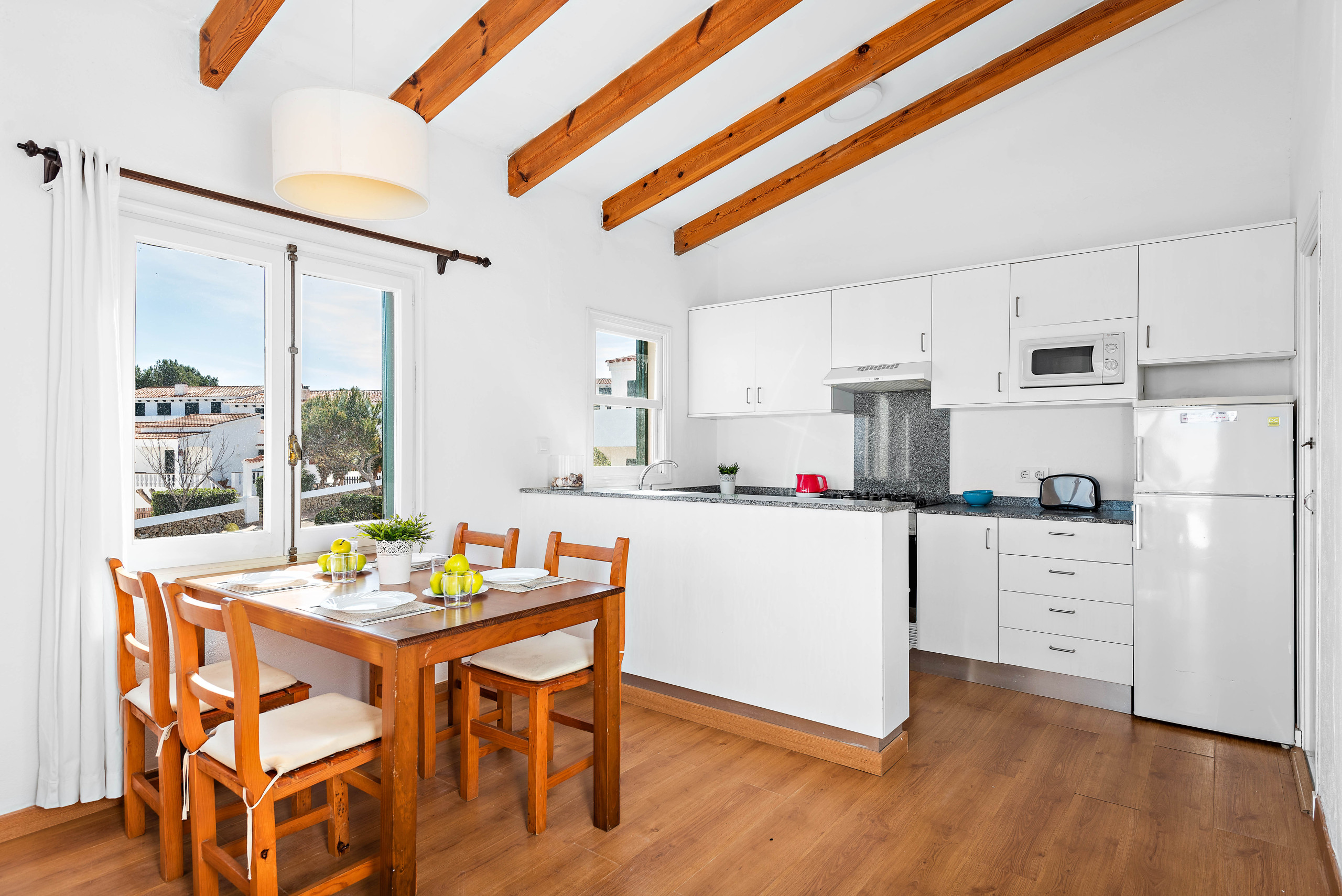 Appartement à Arenal d'en Castell qui possède 2 chambre(s) et Capacité pour 4 personnes. Logement de 40 m² confortable et totalement équipé. La location se trouve à 100 m du supermarché "Romani", 300 m de la plage de sable "Playa Arenal den Castell", 10 km du domaine de Golf "Golf son Parc", 14 km de la ville "Alaior", 21 km from hospital "Hospital General Mateu Orfila", 24 km de l'aéroport "Aeropuerto de Menorca", 50 km du parc d'attractions "aquarock" et il est situé dans une zone idéale pour familles zone et près de la mer.Elle dispose de lave-linge, barbecue, fer à repasser, coffre-fort, accès internet (wifi), sèche-cheveux, climatisation dans le salon, piscine collective, 1 Télévision.La cuisine américaine, à vitrocéramique, est équipée avec réfrigérateur, micro-ondes, four, congélateur, lave-vaisselle, vaisselle/couverts, ustensiles/cuisine, cafetière, grille pain et bouilloire.
