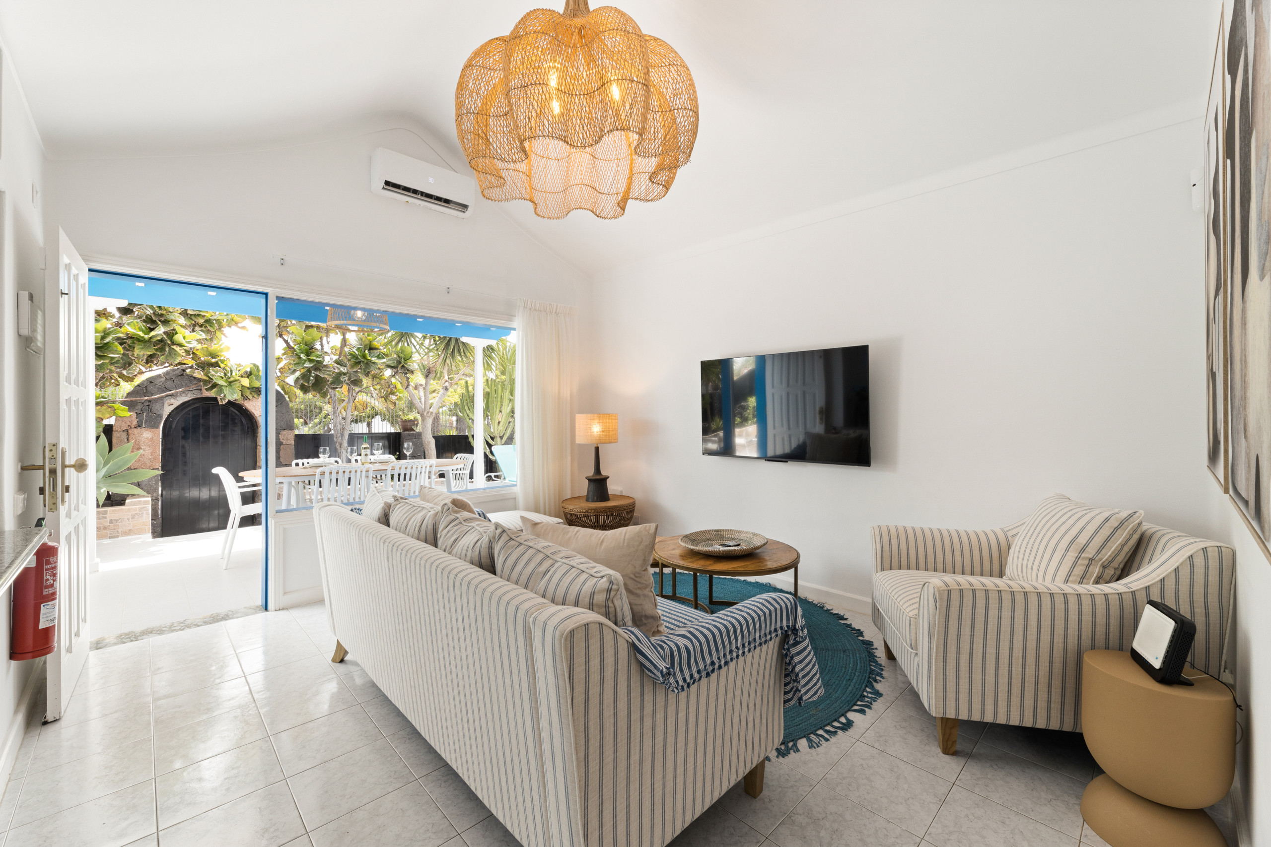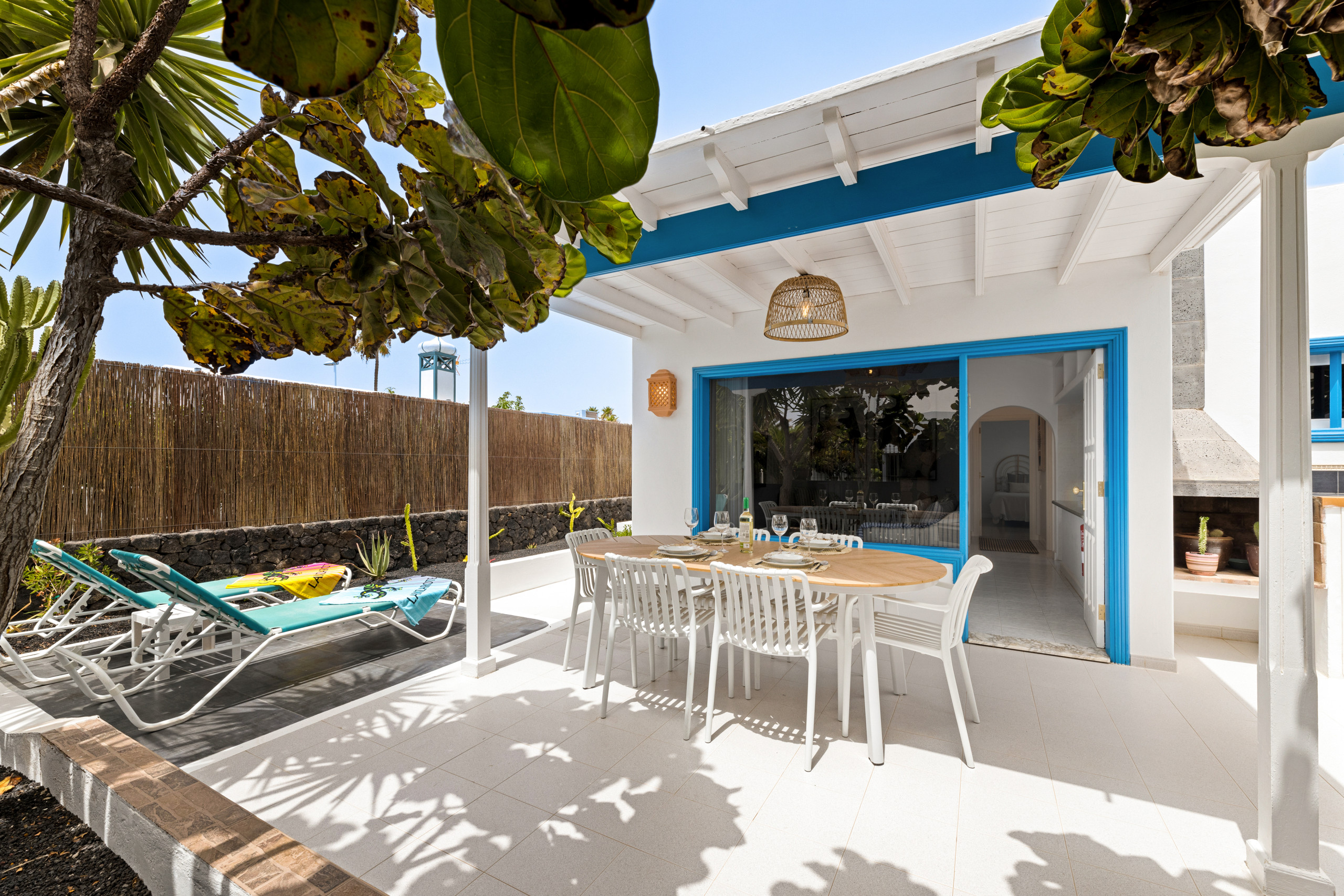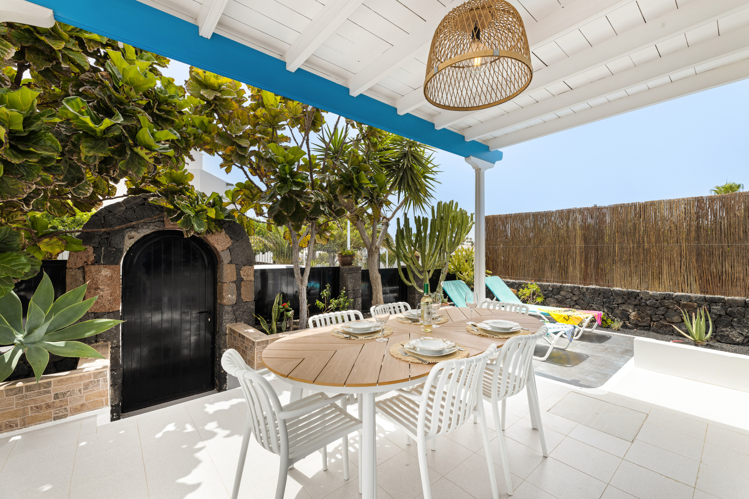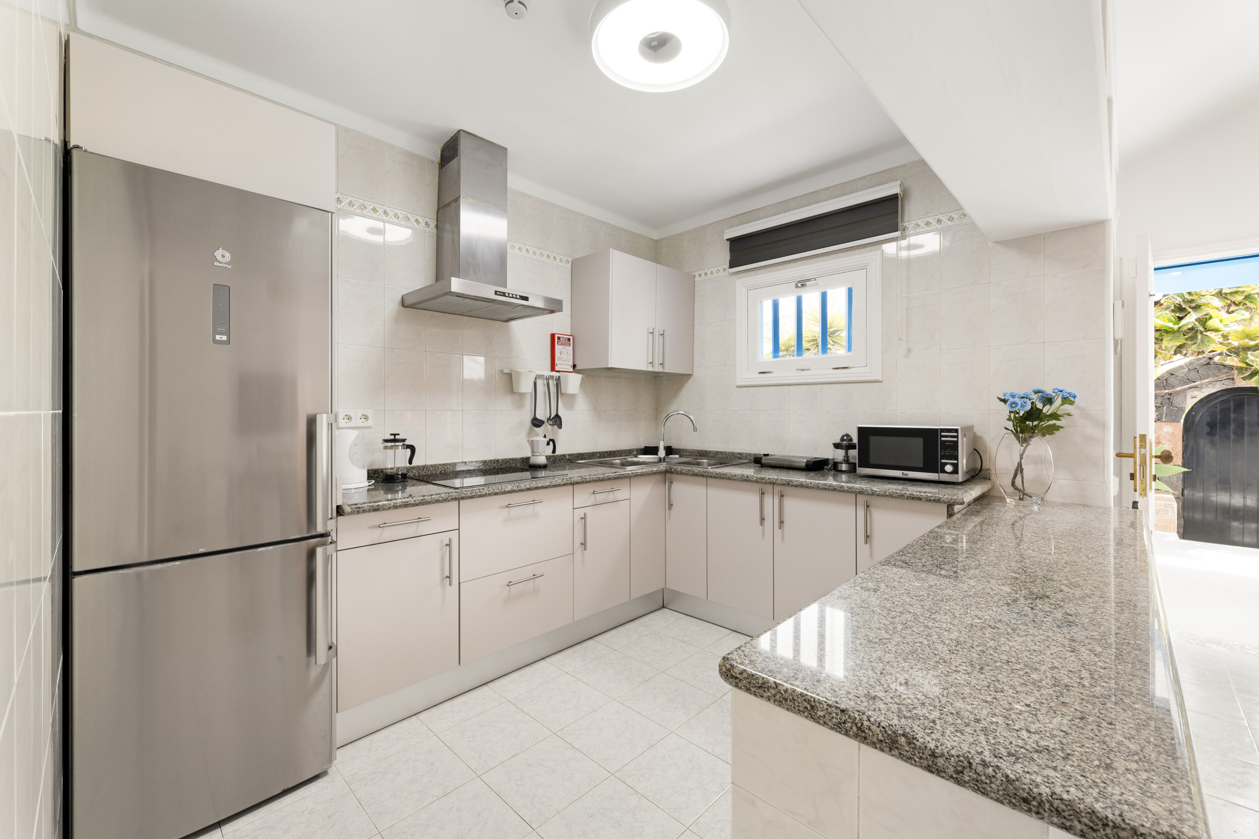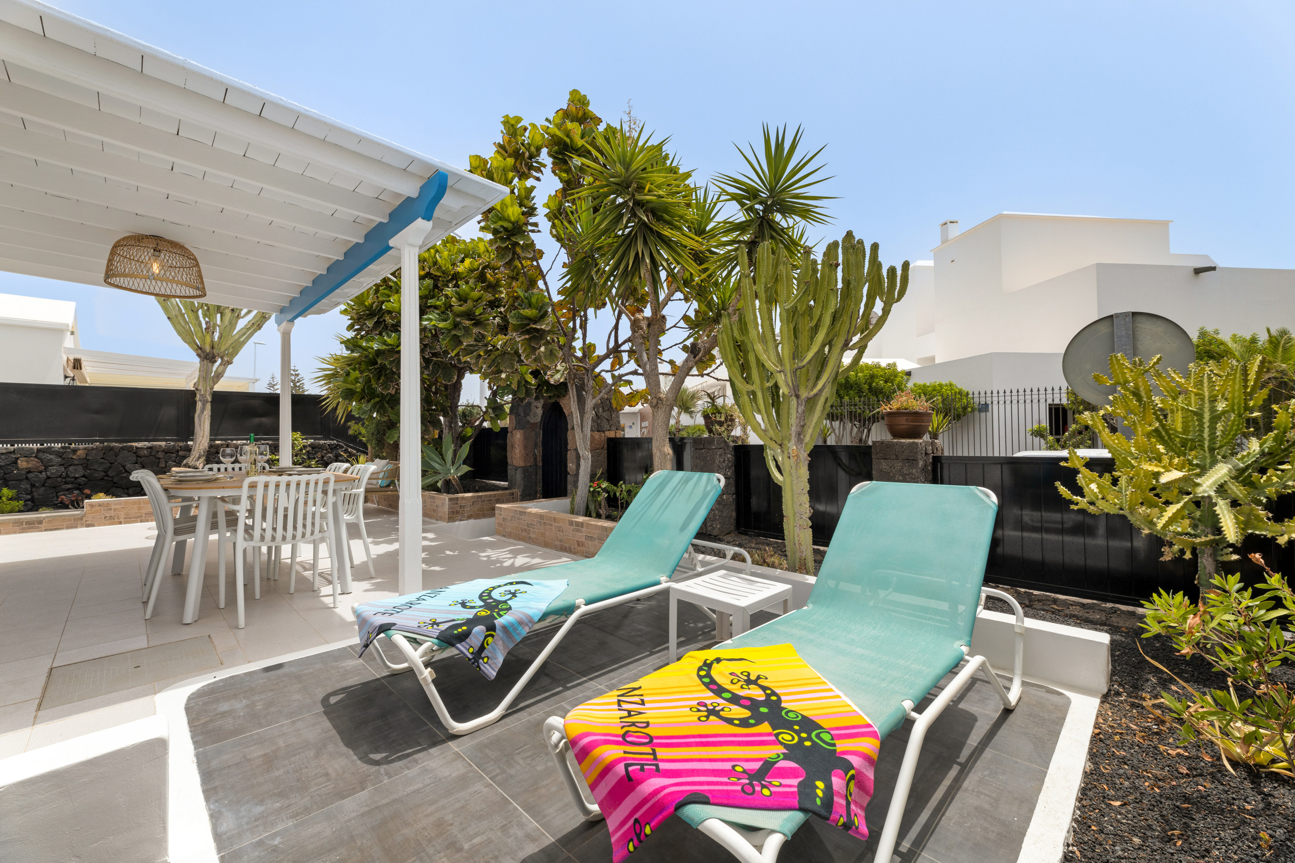 Joli et élégant bungalow situé dans une rue calme de la zone de Pocillos. Il dispose de deux chambres et d'une salle de bain avec lavabo double vasque et douche. Salon lumineux avec climatisation et cuisine équipée avec bar américain. Espace repas extérieur clôturé.