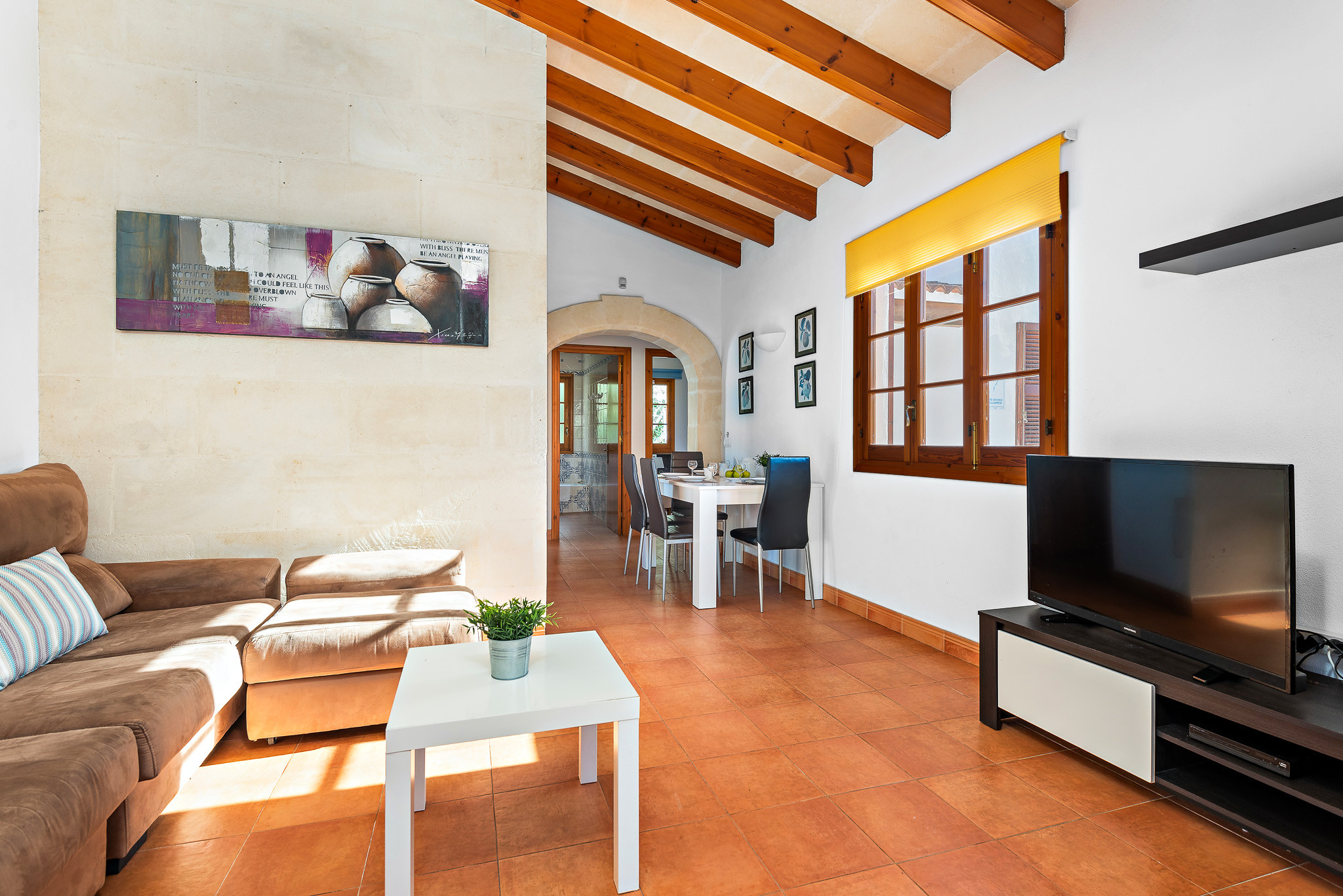 Il se compose d'un salon/salle à manger avec TV avec un grand canapé confortable et une table avec chaises pour 6 personnes.