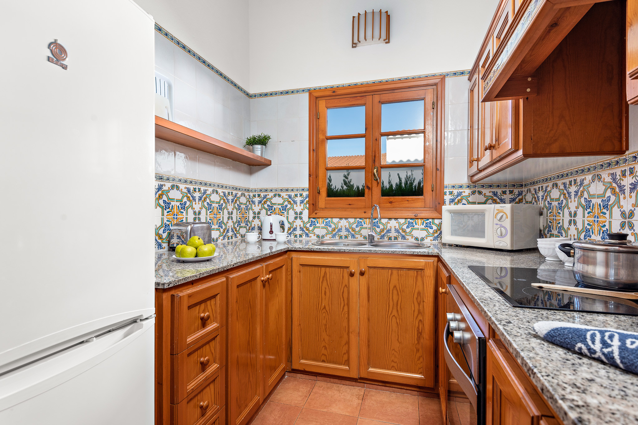 La villa se compose d'un salon avec une télévision avec chaînes numériques, une salle à manger avec une cuisine avec bar à petit-déjeuner. La cuisine avec réfrigérateur, four électrique, micro-ondes, grille-pain, bouilloire et les ustensiles de cuisine. Dehors, nous trouvons une piscine privée avec terrasse couverte avec table et chaises. Barbecue maçonné et solarium avec transats.