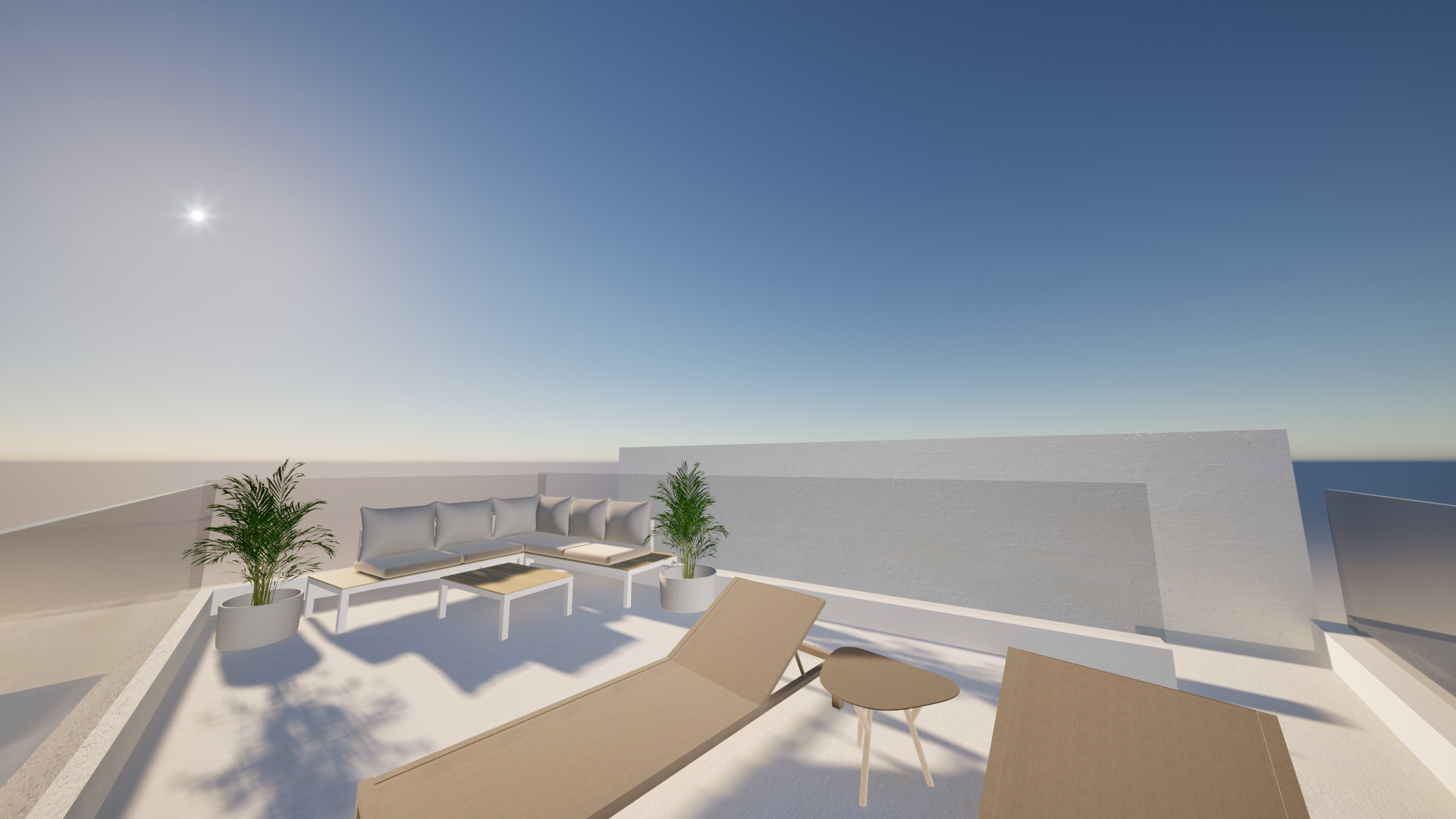 Sur la terrasse-solarium, elle dispose d'un salon extérieur et d'une vue partielle sur la mer.