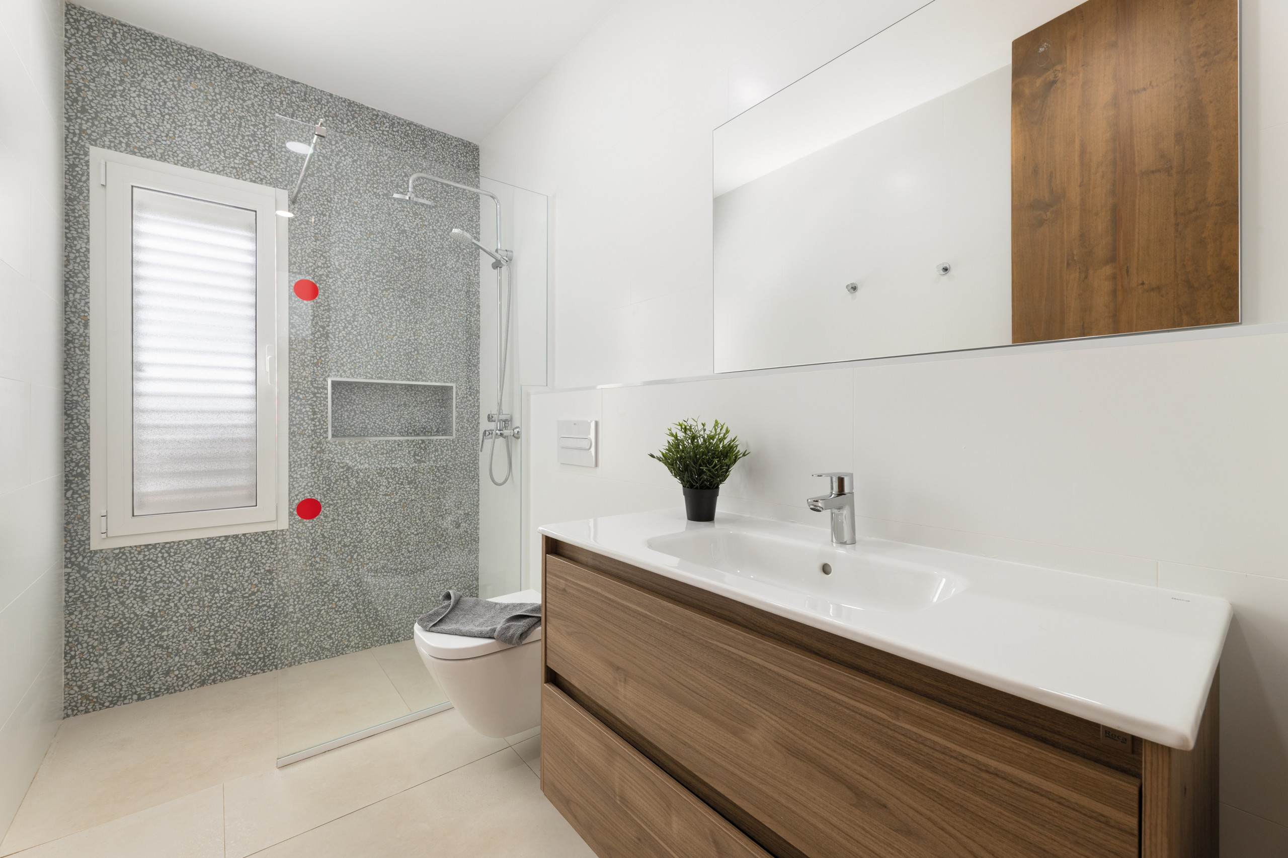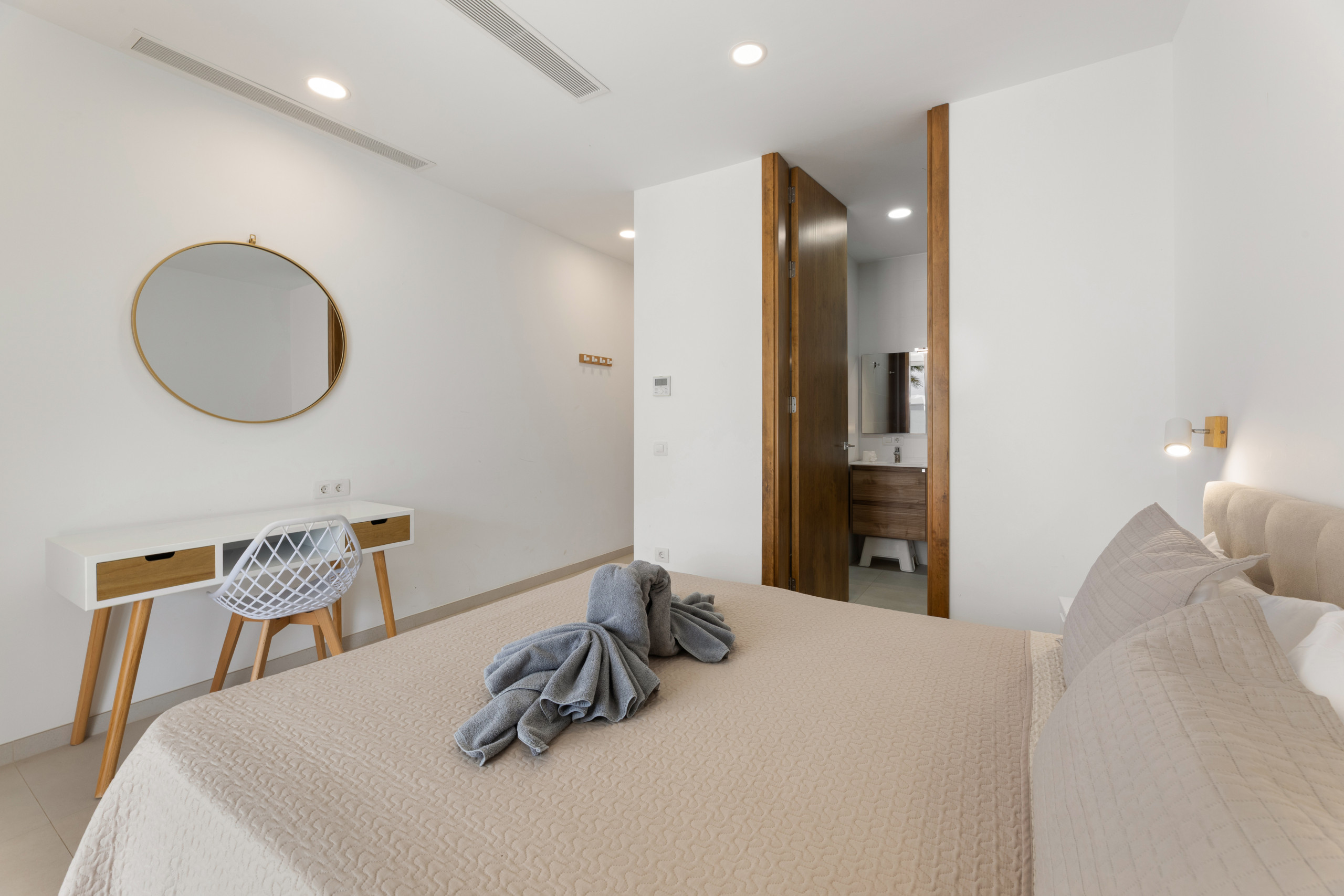 Elle dispose d'une cuisine spacieuse et bien équipée, avec un îlot. Un salon-salle à manger de belle taille où se détendre. Ses trois chambres, dont deux avec un lit de couple et l'autre avec deux lits individuels, sont équipées de la climatisation. À l'intérieur du logement, il y a trois salles de bains (dont deux en suite), avec douche et une avec baignoire.