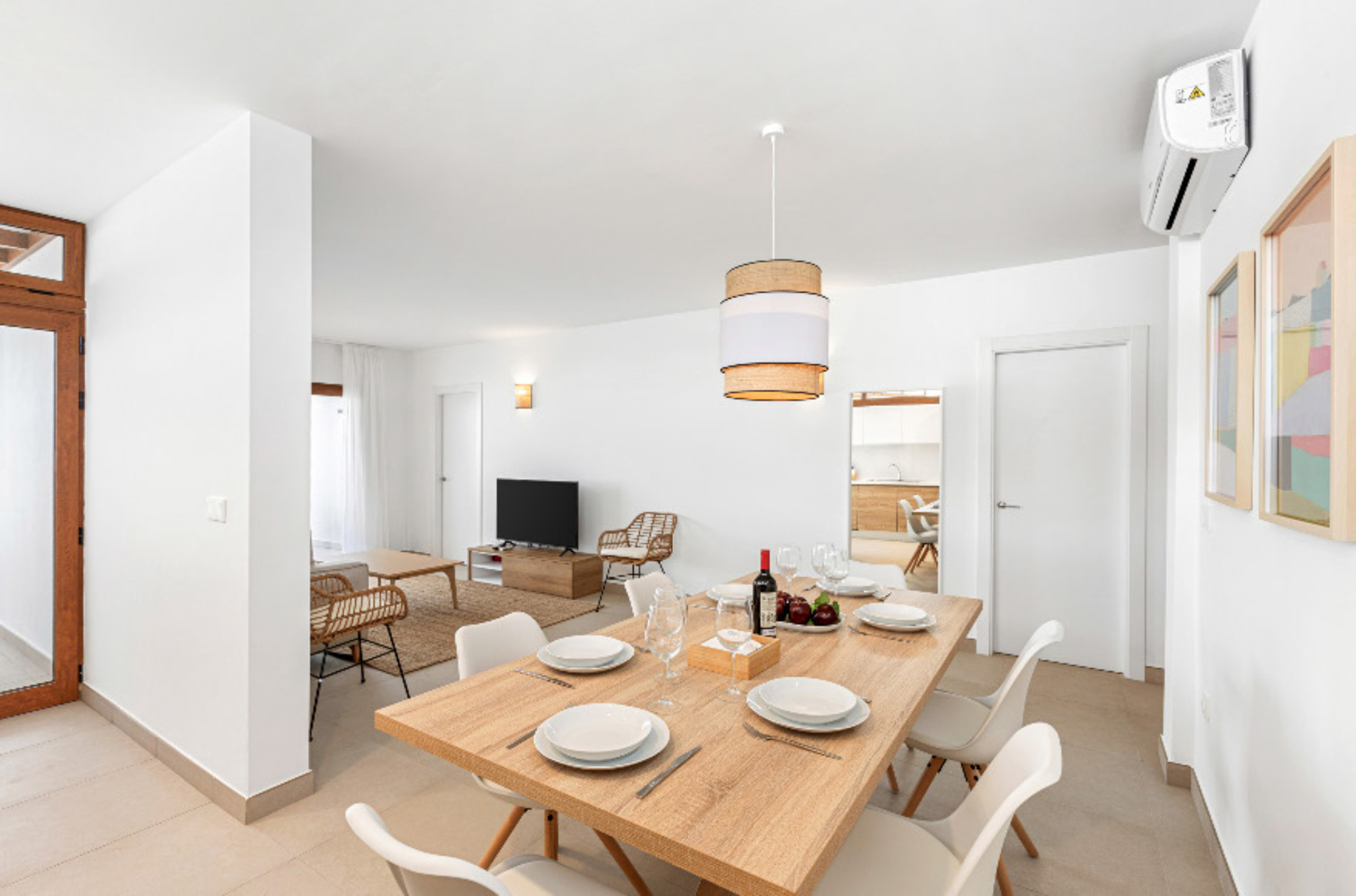 L'intérieur de la villa se distingue par sa luminosité et son design contemporain. Il dispose de 3 salles de bains entièrement équipées, deux avec douche et une avec baignoire, facilitant la cohabitation des invités. La cuisine est entièrement équipée d'appareils électroménagers de dernière génération, comprenant un lave-linge, un lave-vaisselle, un four, un micro-ondes, une cafetière et une large variété d'ustensiles qui rendront la préparation des repas une expérience agréable.