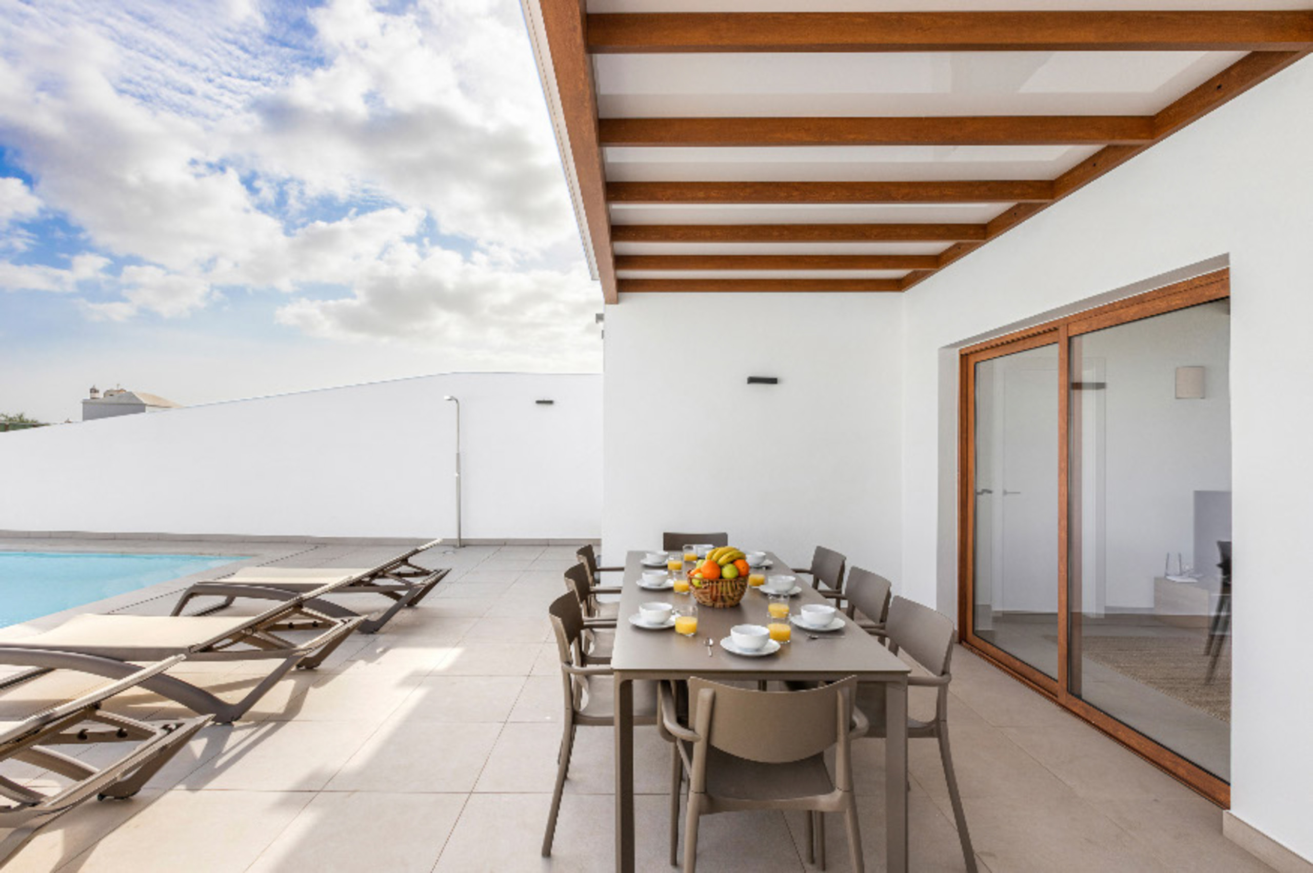 Les espaces extérieurs sont un véritable point de rencontre, avec un jardin privé qui invite à la détente et aux moments de convivialité. La villa dispose de meubles de jardin et d'un barbecue parfait pour profiter de soirées uniques sous le ciel de Lanzarote. De plus, elle dispose d'une piscine privée chauffée en hiver, offrant des vues impressionnantes sur le jardin et ses environs.