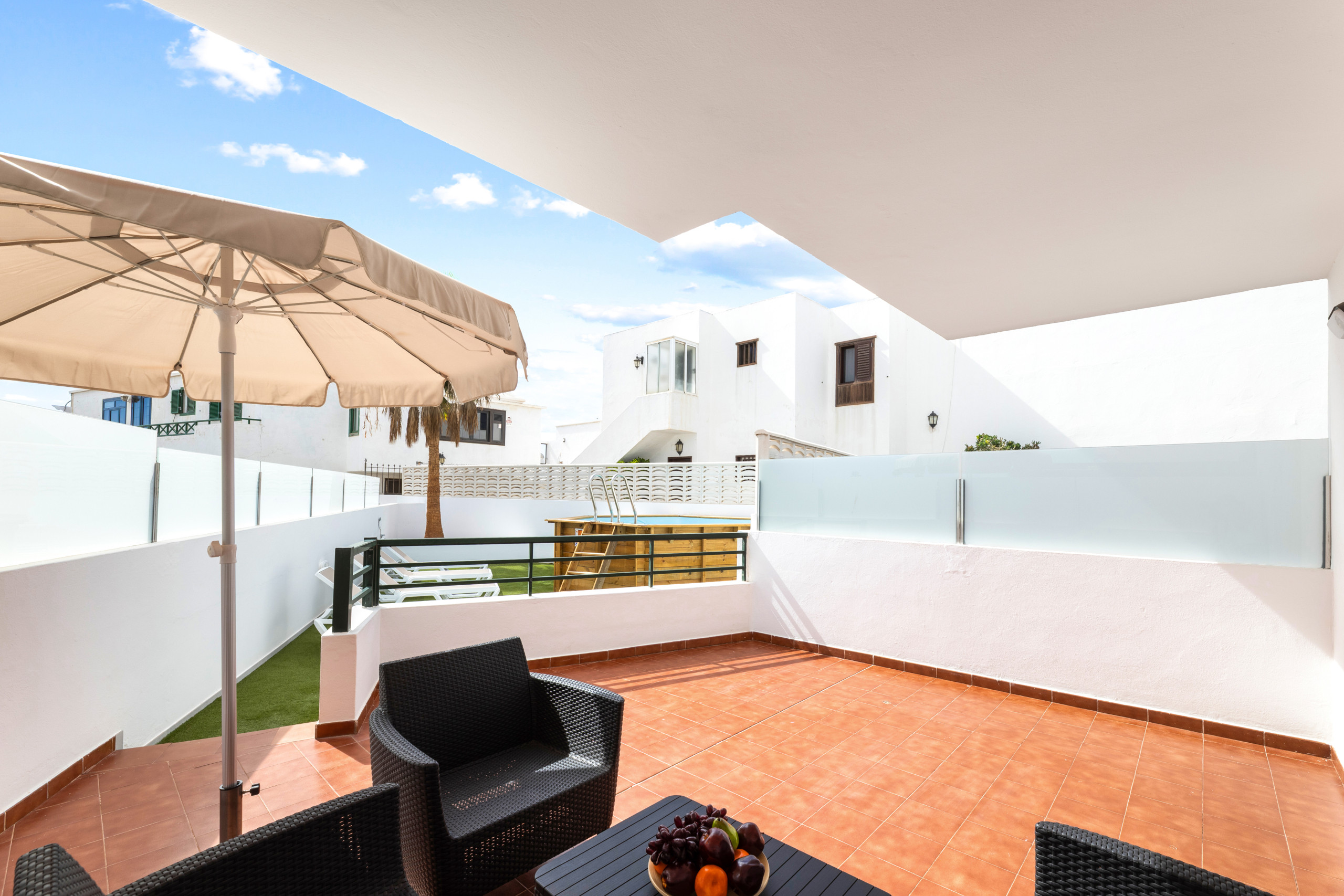 Villa à Puerto del Carmen qui possède 3 chambre(s) et Capacité pour 5 personnes. Logement de 93 m². La location se trouve à 350 m du restaurant "The Plough", 350 m du restaurant "El Arao", 550 m du restaurant "El Charro Mexicano", 650 m de la plage de sable "Playa de Los Pocillos", 950 m de la plage de sable "Playa Grande", 3 km de la plage de sable "Playa Chica", 3 km de la plage de sable "Playa de Matagorda", 4 km de l'aéroport "Aeropuerto César Manrique-Lanzarote", 4 km de l'aéroport "Aeropuerto César Manrique-Lanzarote".Elle dispose de mobilier de jardin, clôture, terrasse, lave-linge, coffre-fort, accès internet (wifi), sèche-cheveux, balcon, climatisation, piscine chauffée privée, TV.La cuisine, est équipée avec réfrigérateur, micro-ondes, four, congélateur, vaisselle/couverts, ustensiles/cuisine, cafetière, grille pain, bouilloire et presse-agrumes.