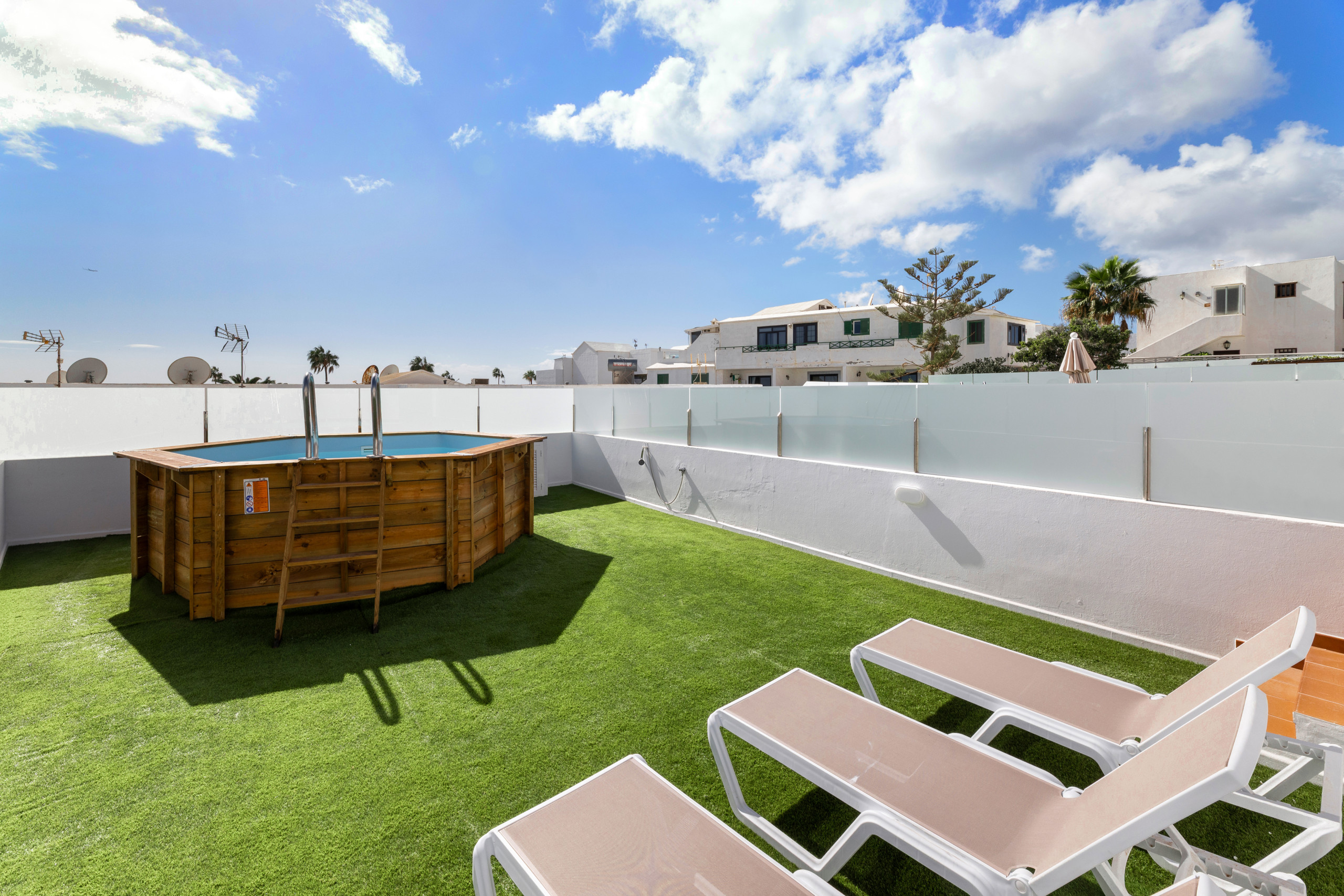 Villa à Puerto del Carmen qui possède 3 chambre(s) et Capacité pour 5 personnes. Logement de 93 m². La location se trouve à 350 m du restaurant "The Plough", 350 m du restaurant "El Arao", 550 m du restaurant "El Charro Mexicano", 650 m de la plage de sable "Playa de Los Pocillos", 950 m de la plage de sable "Playa Grande", 3 km de la plage de sable "Playa Chica", 3 km de la plage de sable "Playa de Matagorda", 4 km de l'aéroport "Aeropuerto César Manrique-Lanzarote", 4 km de l'aéroport "Aeropuerto César Manrique-Lanzarote".Elle dispose de mobilier de jardin, clôture, terrasse, lave-linge, coffre-fort, accès internet (wifi), sèche-cheveux, balcon, climatisation, piscine chauffée privée, TV.La cuisine, est équipée avec réfrigérateur, micro-ondes, four, congélateur, vaisselle/couverts, ustensiles/cuisine, cafetière, grille pain, bouilloire et presse-agrumes.