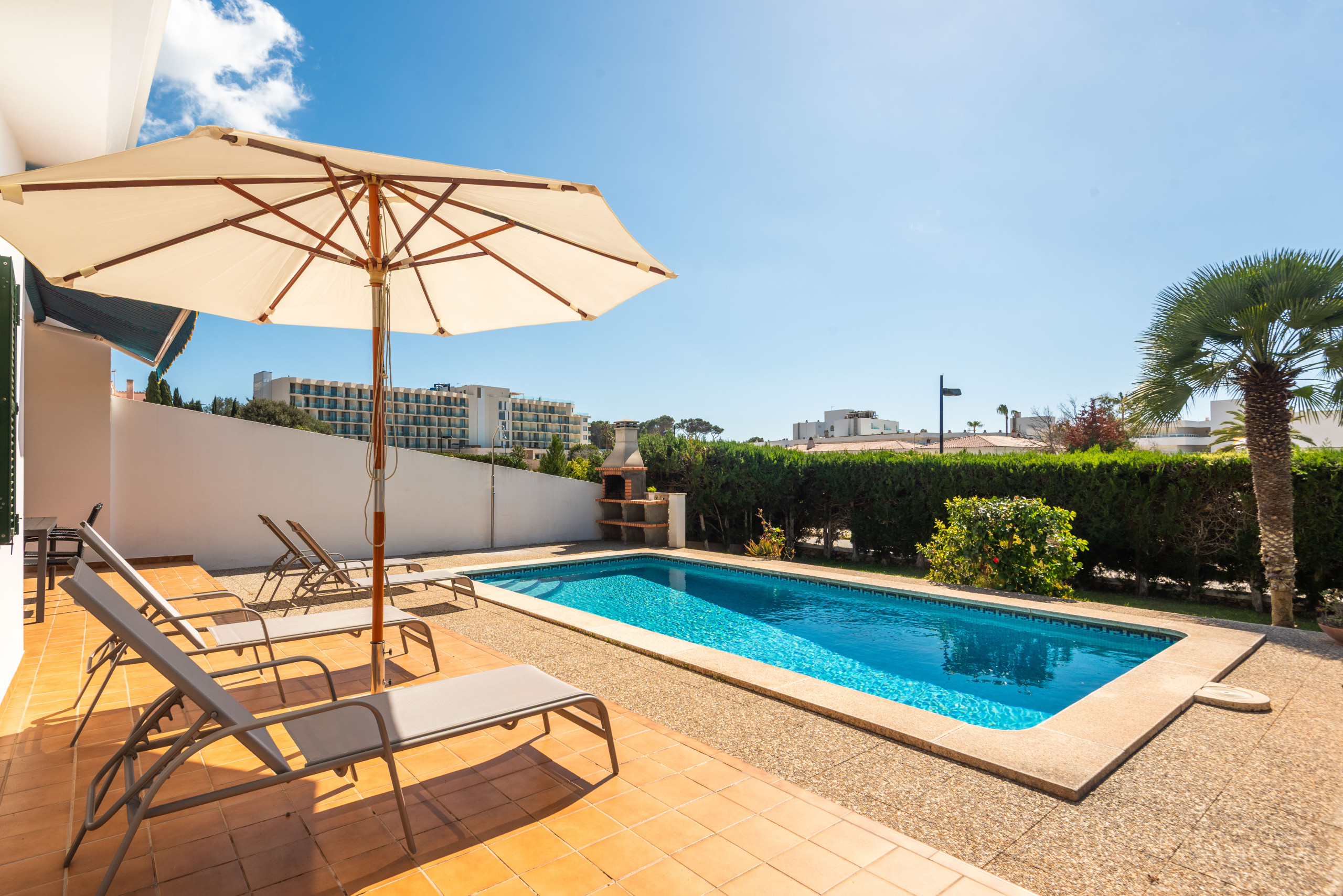 Un point fort de Villa Noelia est son jardin extérieur, qui offre un espace parfait pour des moments de détente et de vie familiale. La zone est équipée de meubles de jardin et d'un barbecue, idéal pour profiter de repas en plein air et partager des moments spéciaux.
