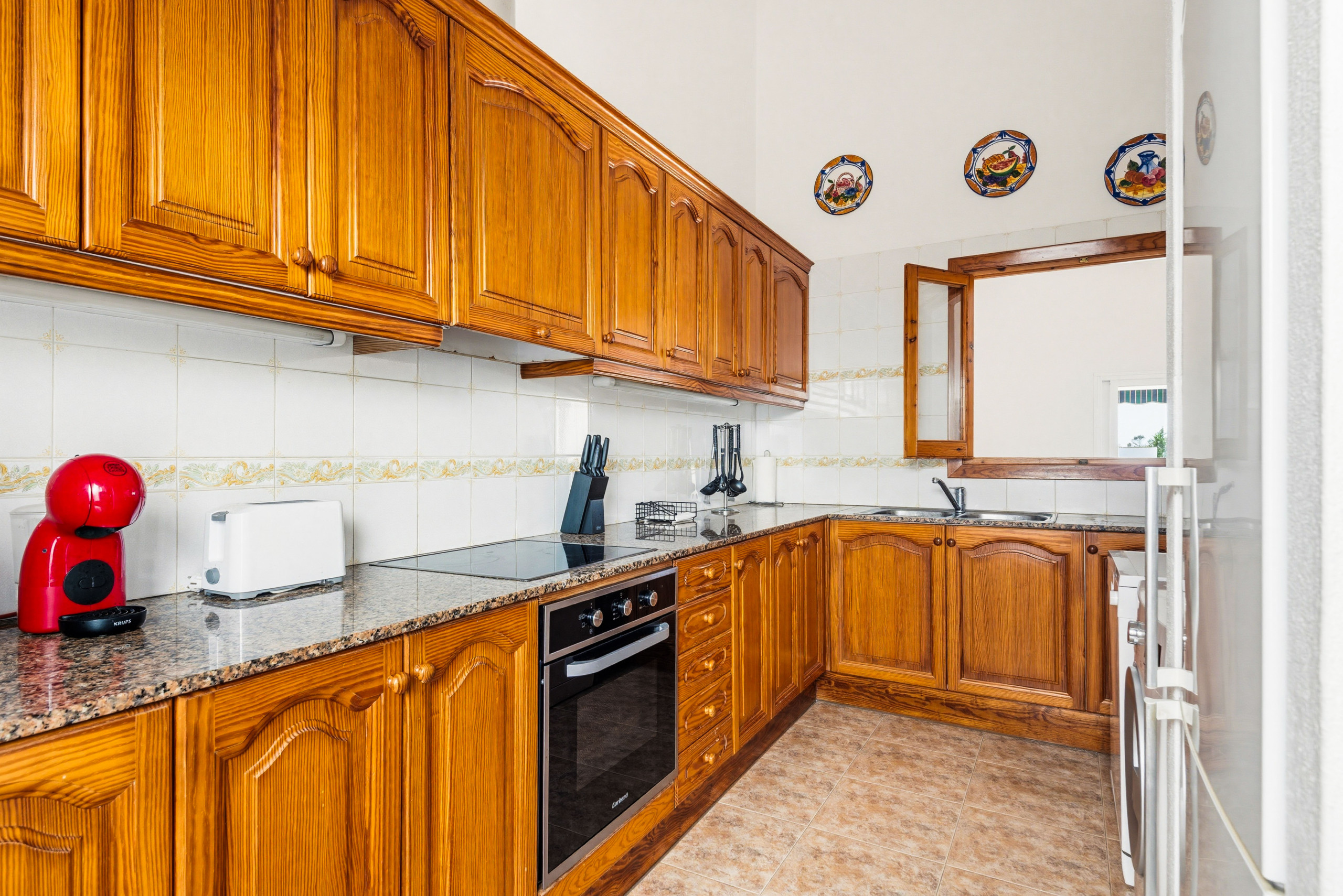 La cuisine américaine est entièrement équipée d'électroménagers de dernière génération, comprenant un lave-linge, un lave-vaisselle, un four, un micro-ondes, une cafetière, un grille-pain et une bouilloire. De plus, elle dispose du wifi et de la climatisation dans les chambres pour garantir le confort maximal.