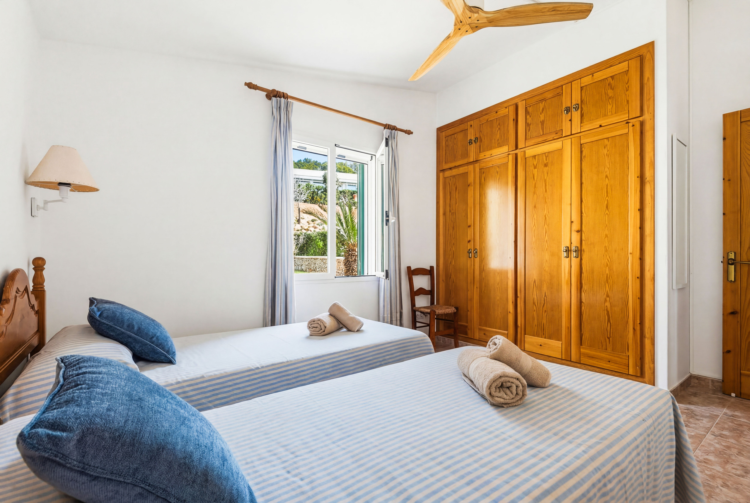 La villa dispose d'une chambre avec un lit double, climatisation, coffre-fort et salle de bain attenante avec douche, et 2 chambres avec des lits simples, toutes deux avec climatisation, qui partagent une salle de bain complète avec douche.