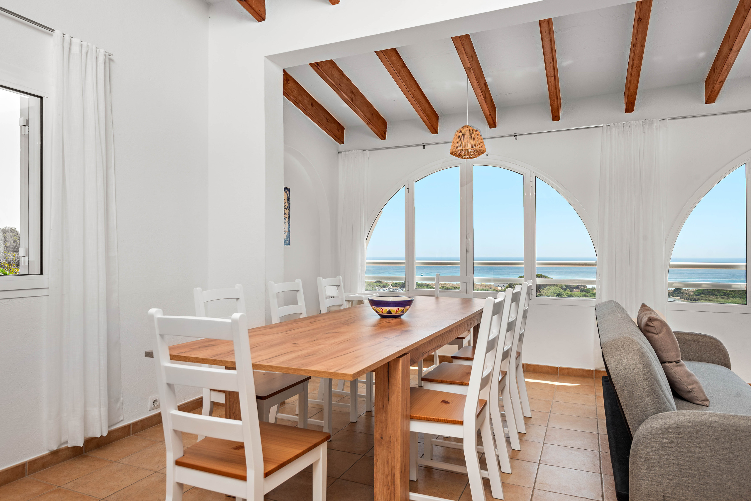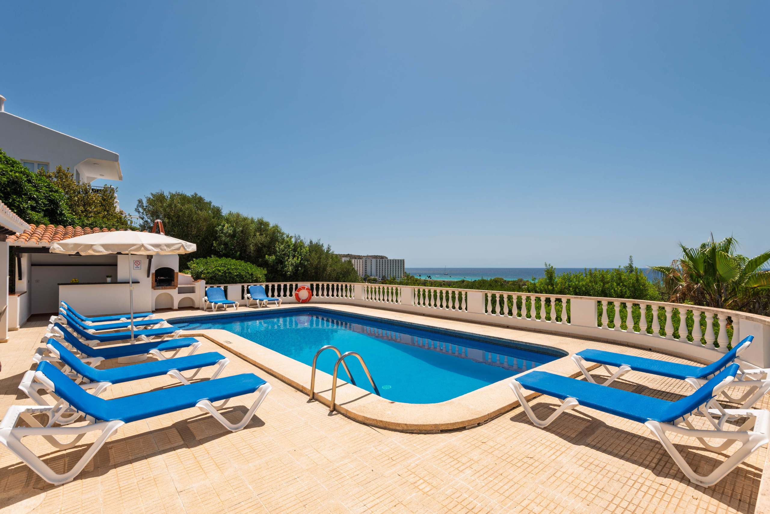 Profitez de vacances en famille dans cette magnifique villa située à Son Bou, Minorque. Avec 5 chambres spacieuses et 6 salles de bain, cette propriété peut accueillir confortablement jusqu'à 8 personnes.