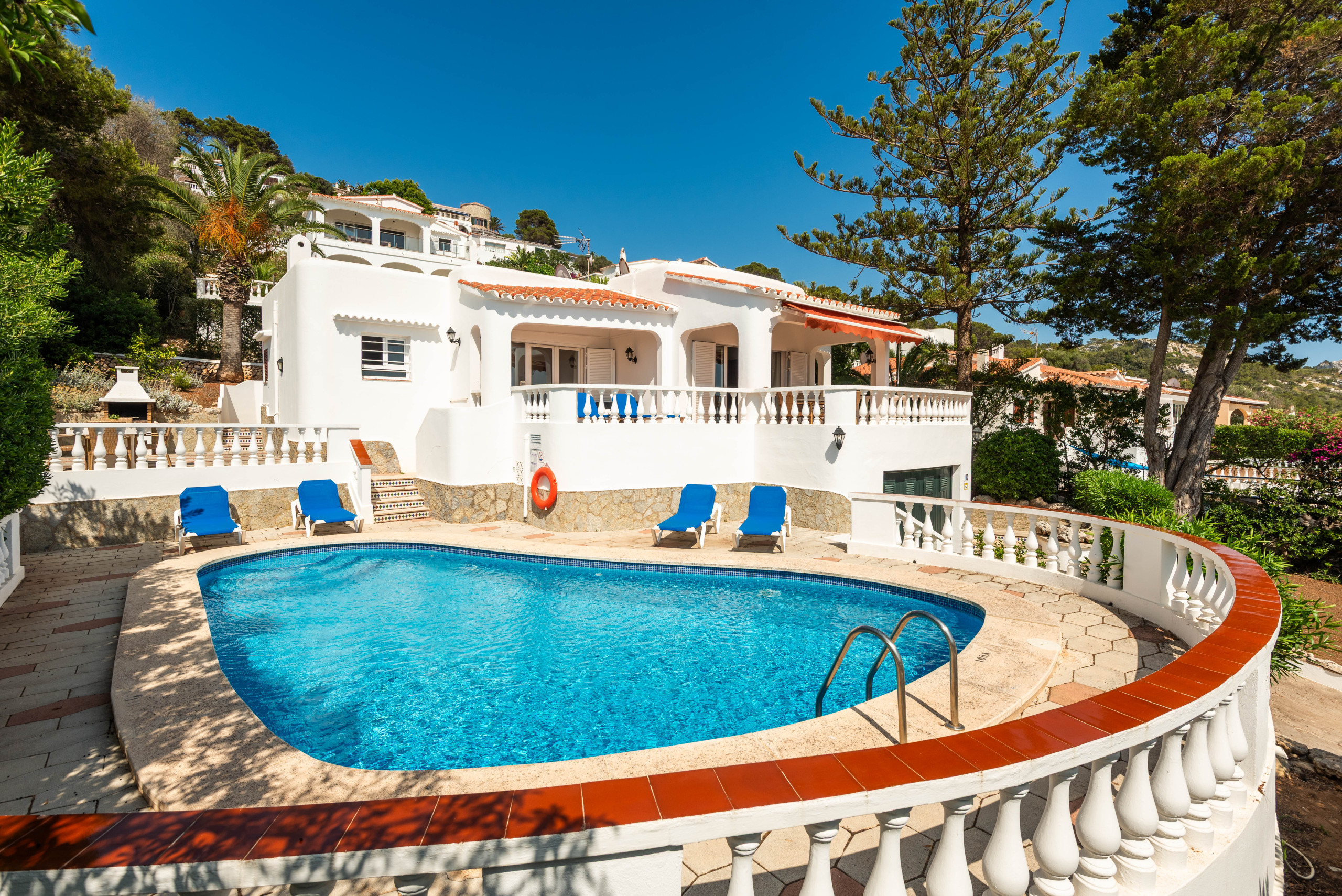 Très belle maison avec une super piscine et vue sur la mer. Les différentes terasses permettent de se mettre à l'ombre en fonction du moment de la journée.