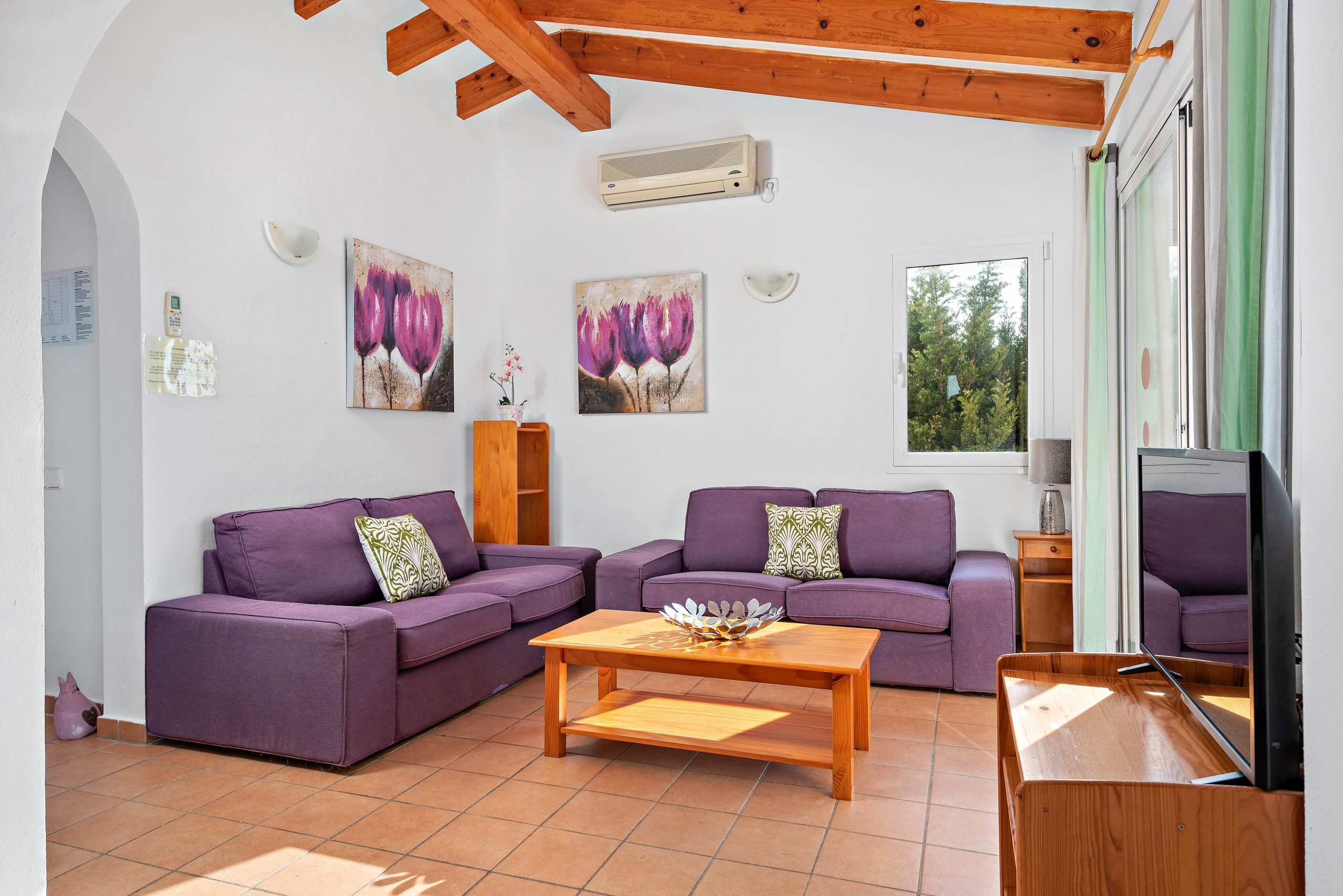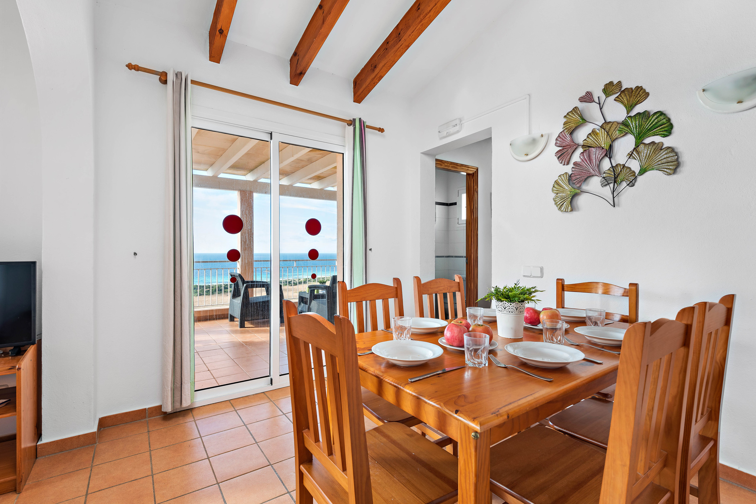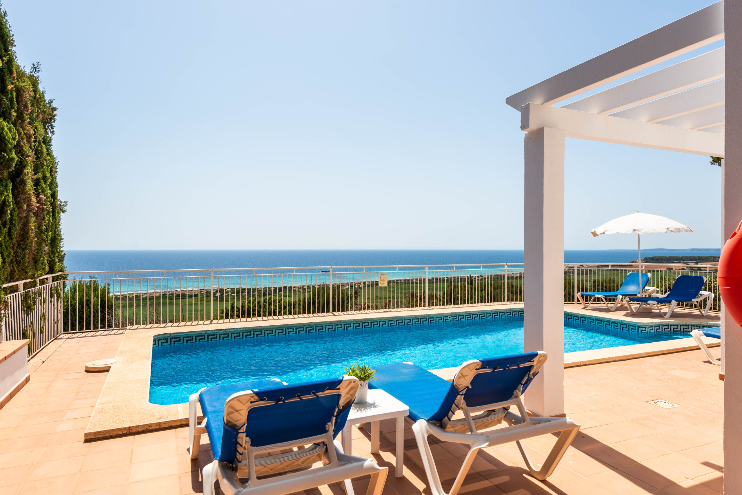 Cette magnifique maison de plain-pied est située dans la rue centrale principale de San Jaime Mediterráneo. La maison possède sa propre piscine privée et ses jardins et compte tenu de son emplacement, elle offre une vue imprenable sur la Méditerranée et la plage de Son Bou depuis plusieurs endroits différents autour de la maison.)