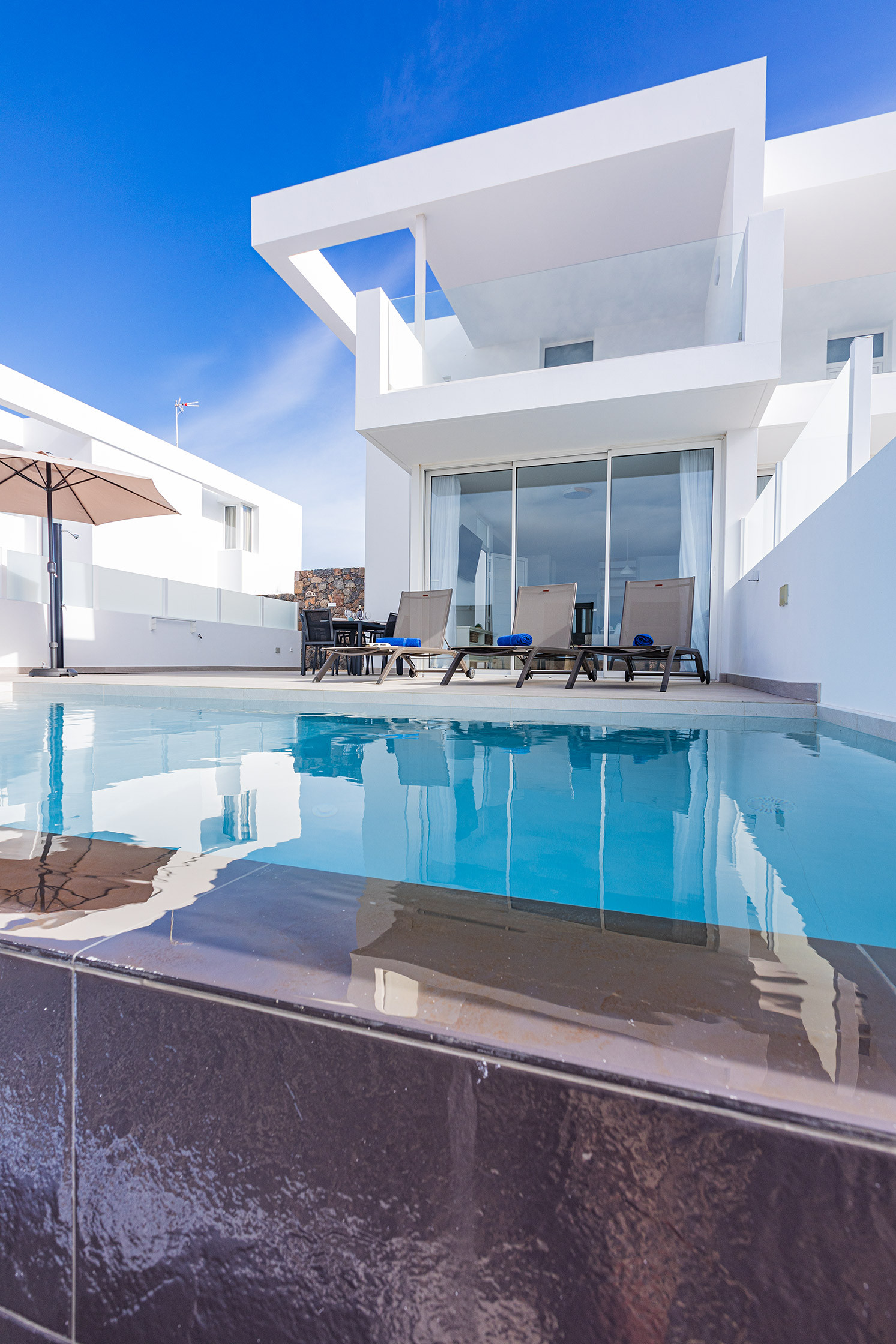 Villa à Tías qui possède 3 chambre(s) et Capacité pour 6 personnes. Logement de 114 m², avec vue sur la mer et la montagne. La location se trouve à 0 m de l'hôpital, 1 km de la cafétéria "San Antonio Panificadora", 1 km du restaurant "El Manduco", 1 km du restaurant "La Ermita", 4 km de la plage de sable "Los Pocillos", 5 km de l'aéroport "Aeropuerto César Manrique-Lanzarote", 5 km de la plage de sable "Matagorda", 5 km de la plage de sable "Playa Grande Puerto del Carmen".Elle dispose de jardin, mobilier de jardin, clôture, terrasse, lave-linge, barbecue, coffre-fort, accès internet (wifi), sèche-cheveux, balcon, climatisation, piscine chauffée privée, parking extérieur même bâtiment, TV.La cuisine, est équipée avec réfrigérateur, micro-ondes, four, congélateur, lave-vaisselle, vaisselle/couverts, ustensiles/cuisine, cafetière, grille pain, bouilloire et presse-agrumes.