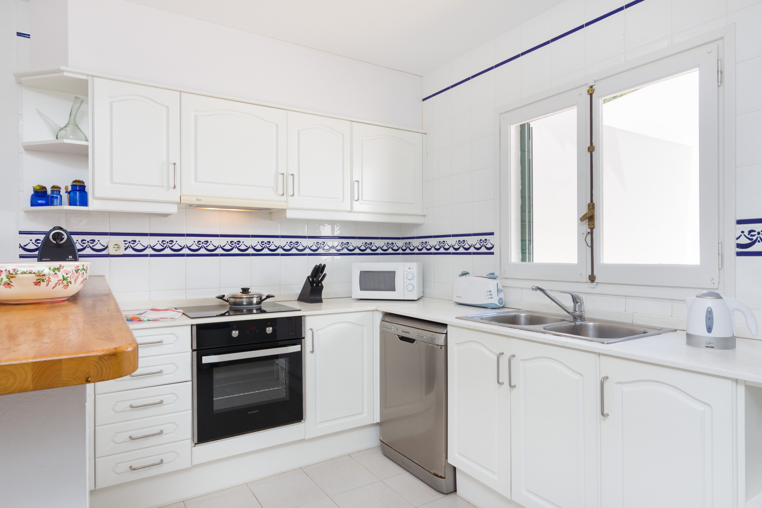 La cuisine américaine, à vitrocéramique, est équipée avec réfrigérateur, micro-ondes, four, congélateur, lave-vaisselle, vaisselle/couverts, ustensiles/cuisine, cafetière, grille pain et bouilloire.